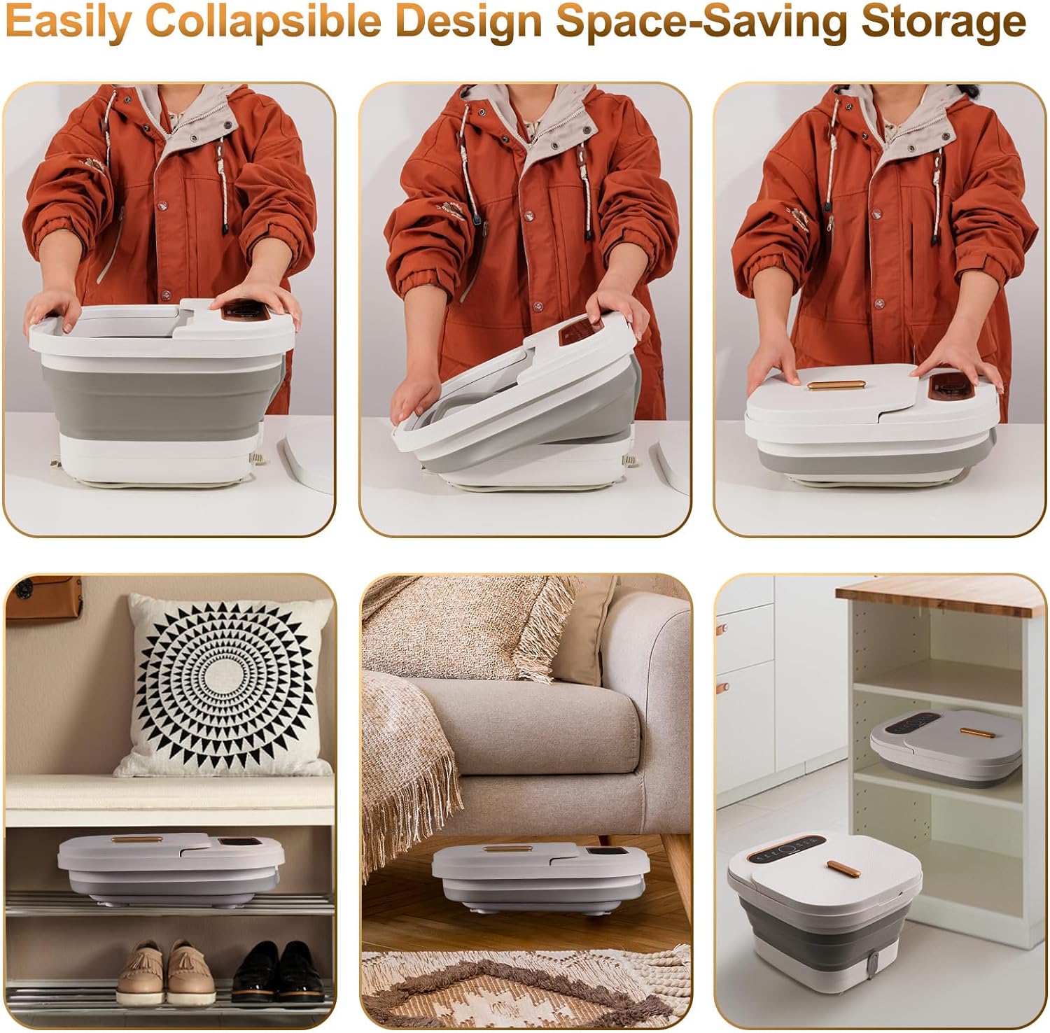 - 【All-in One Foot spa bath】Adopts hydroelectric separation for your safety, integrates touch screen, PTC heating system fast heat up the water with lid, and massage rollers, bubble, red light, material box, warm water foot spa for you to relax your feet.
