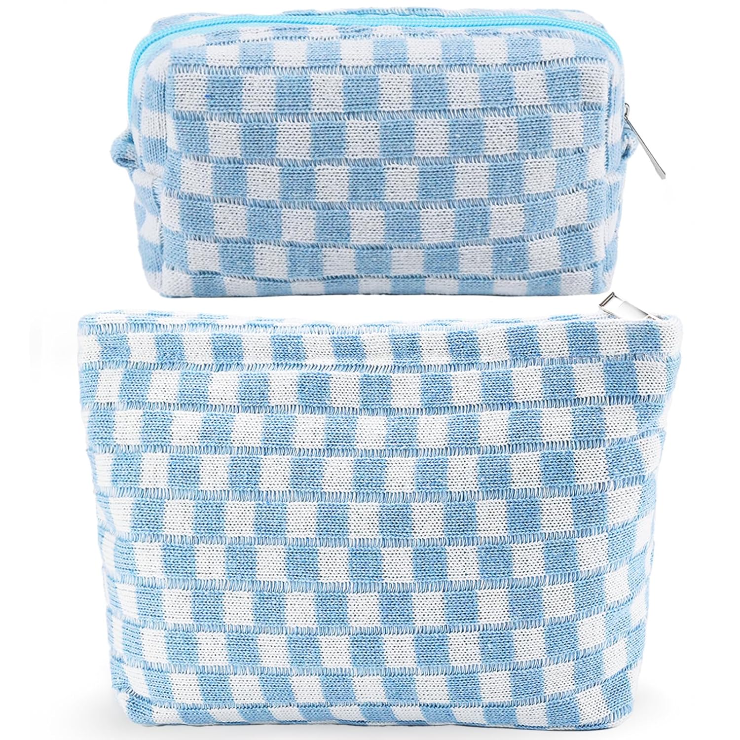 - LARGE CAPACITY AND PREMIUM MATERIAL: The cute makeup bag measure 10.6×7 inches and 7×4 inches, easy to carry. The checkered makeup bag is made of soft knitted fabric, easy to clean. The smaller ones can be used as pencil case or pencil pouch. This makeup travel bag can also hold small items such as makeup, skincare products, lipstick, eye shadow, eyebrow brush, etc. Makeup storage bag for women toiletries