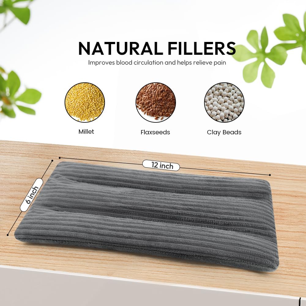 - 【Moist Heating Pad Microwavable with Natural Material】Microwave heating pad is filled with flaxseed, millet, clay beads that are unscented and retain heat more durable and effective, providing longer comfortable when heated.