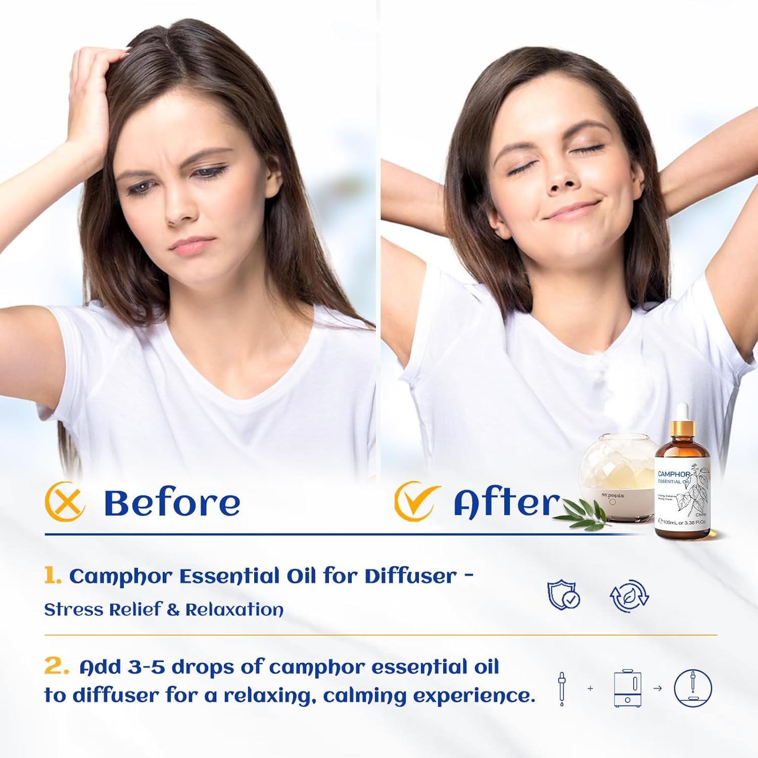 - Ingredient & Aroma: 100% pure camphor essential oil, sourced from the premium camphor tree, contains no additives or diluents and retains the plant's natural components and properties. Fresh and slightly pungent, with a camphoraceous odor