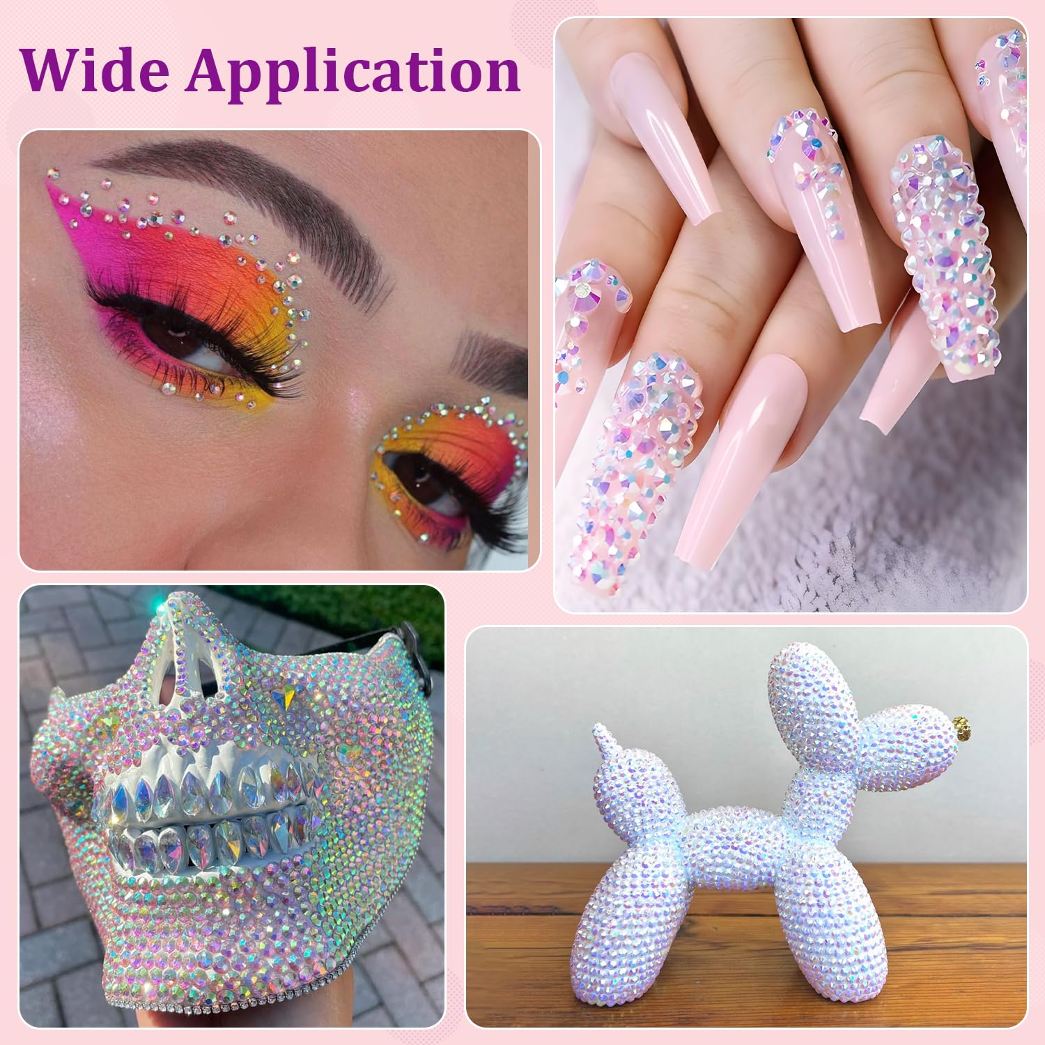 - WIDE APPLICATION -- These sparkling iridescent resin rhinestones are perfect for creating dazzling looks. Use them for bedazzling DIY crafts like shoes, tumblers, mugs, bottles, phone cases, popsockets, scrapbooks, photo frames, diamond paintings, greeting cards, bags, glasses, guitars, keychains, hats, masks, hair clips, bracelets, wristbands, clothing, clothes, wedding dresses, and more. Apply it to what you want to bling!