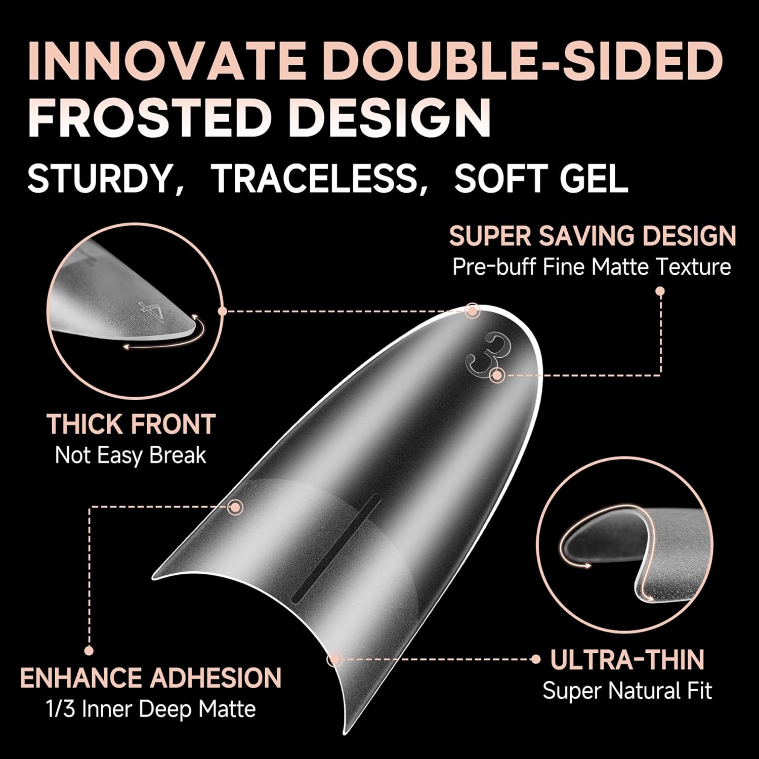 - 🎉NEWLY DOUBLE SIDE MATTE TEXTURE-Our medium almond nail tips feature double-sided matte nail tips design, no extra filing required! The outer wall makes it easier to apply nail polish and gives a glossy finish. The inner deep matte firmly adheres to the nail without worrying about the nail pop off easily. Easily get beauty that lasts 28+ days. We are committed to bringing you professional, efficient and safe nail care.