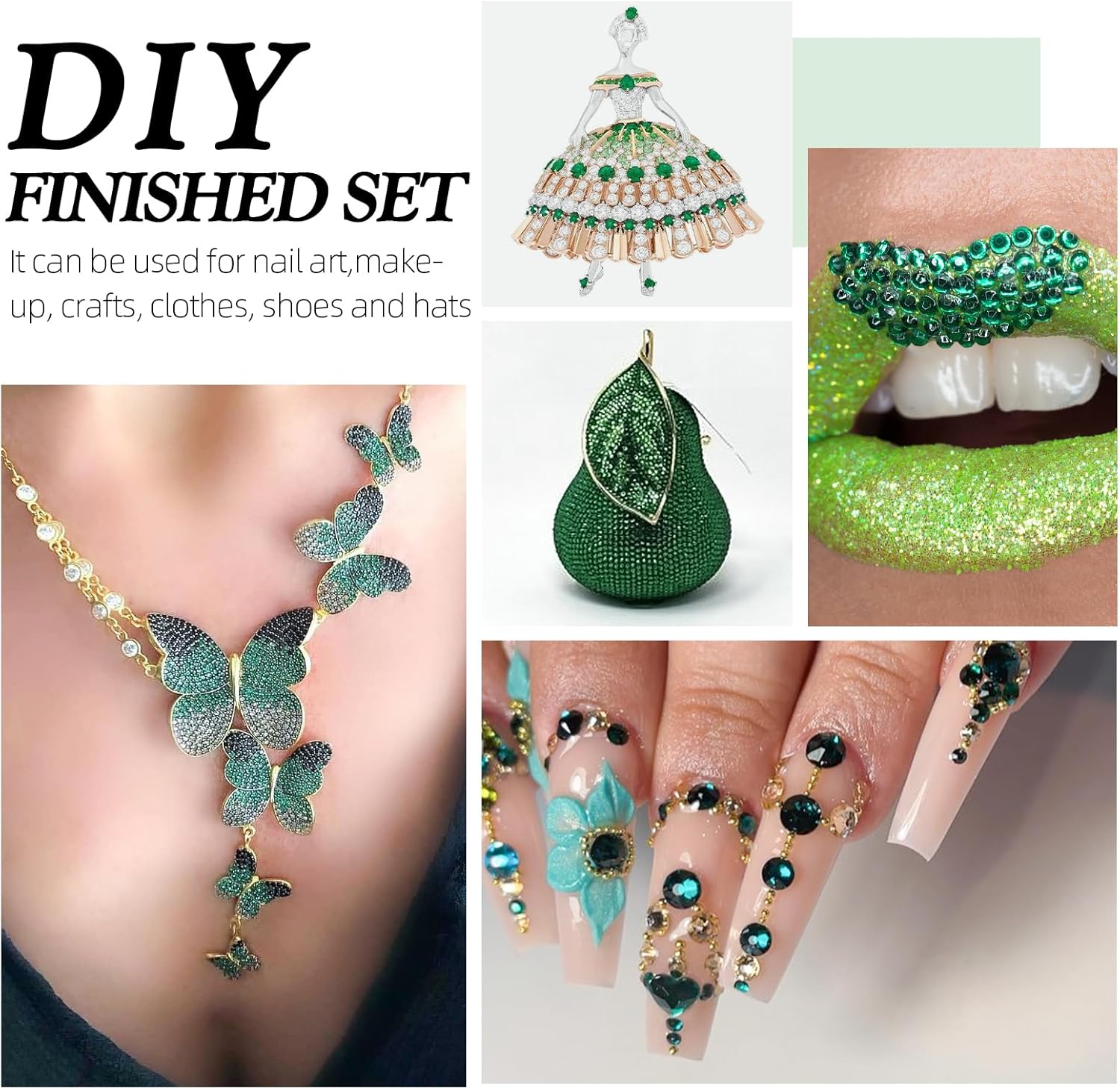 Malachite Green Flatback Rhinestones, Glass Rhinestones for Nail Art and Craft, Glue Fix, Loose Crystal Gemstones(Green, SS16, 1440pcs, 3.8-4.0mm)