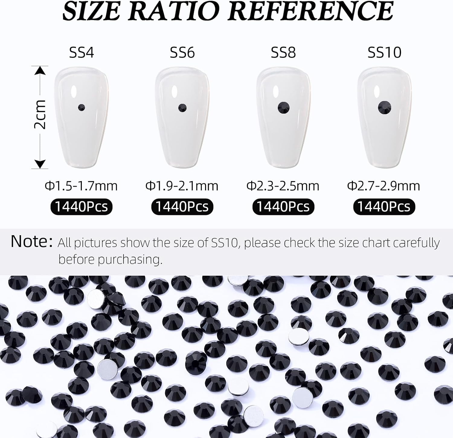 - Product Packaging: Bags packaging SS10 2.7~2.8 MM - 1440 Pcs black flatback rhinestones