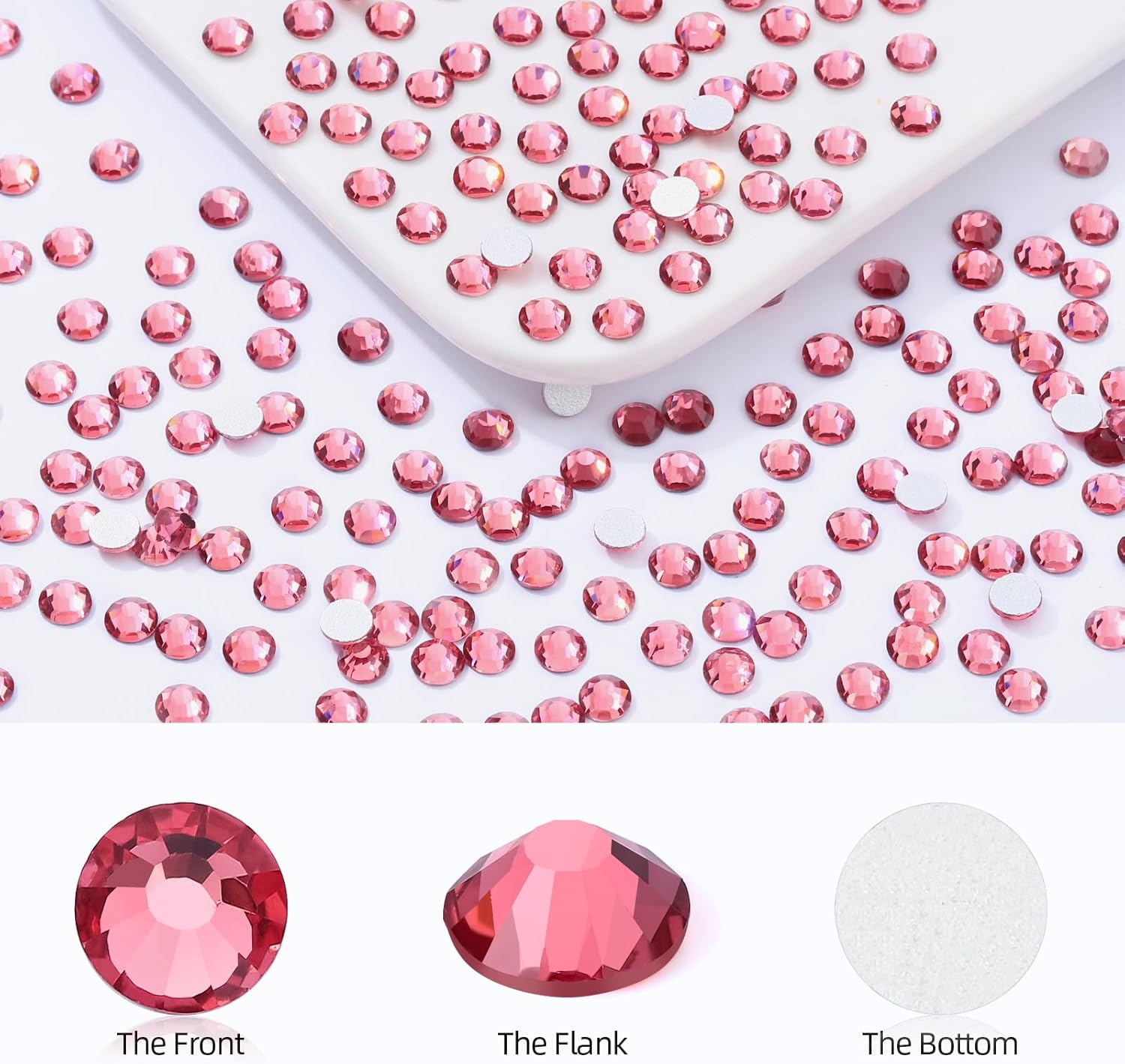 Rose Flatback Rhinestones, Glass Rhinestones for Nail Art and Craft, Glue Fix, Loose Crystal Gemstones(Rose, SS20, 1440pcs, 4.6-4.8mm)