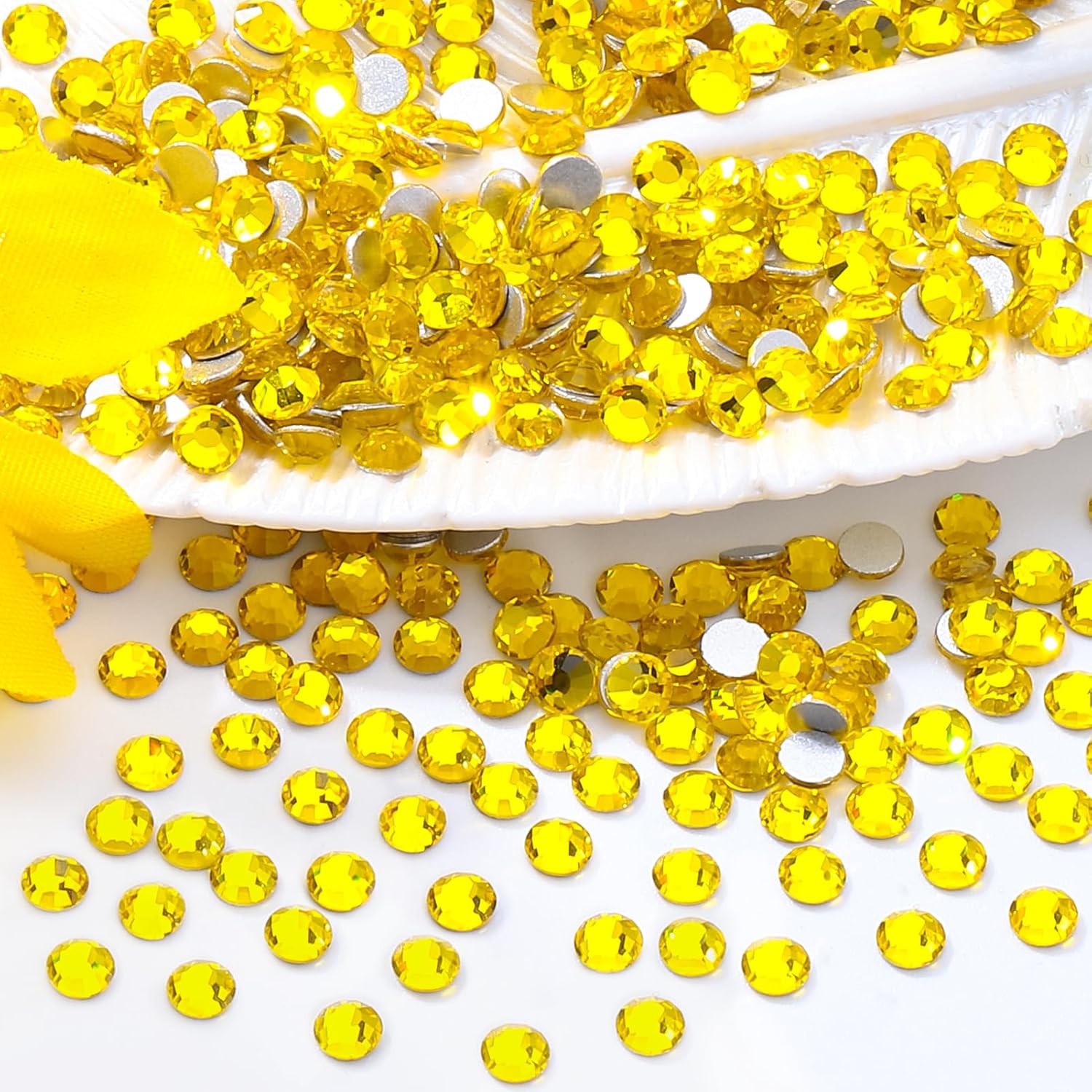 Citrine Flatback Rhinestones, Glass Rhinestones for Nail Art and Craft, Glue Fix, Loose Crystal Gemstones(Yellow, SS6, 1440pcs, 1.9-2.0mm)