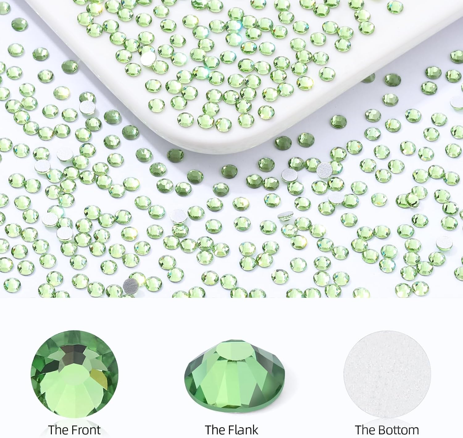 Light Green Flatback Rhinestones, Glass Rhinestones for Nail Art and Craft, Glue Fix, Loose Crystal Gemstones(Lt.Green, SS4, 1440pcs, 1.5-1.7mm)