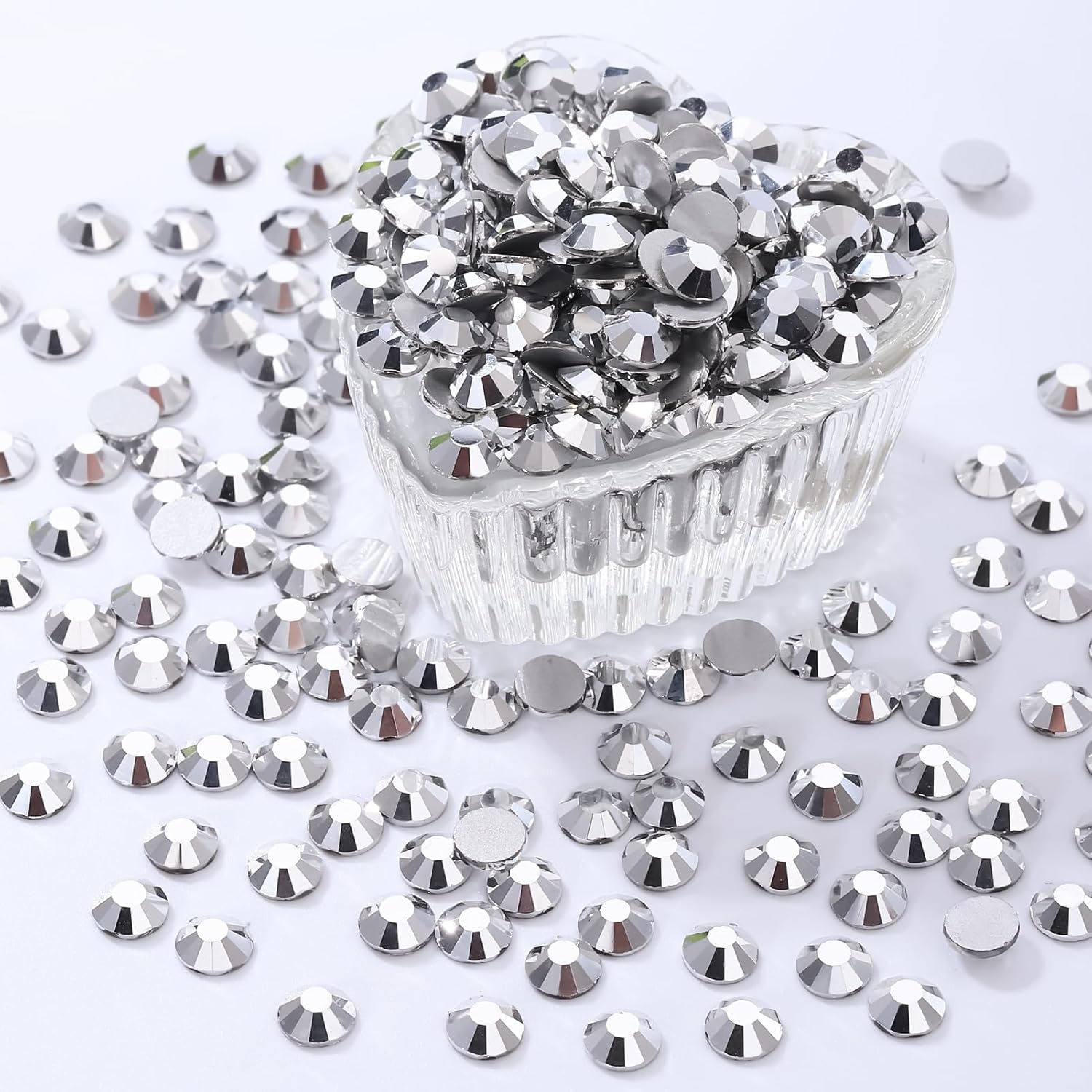 Silver Flatback Rhinestones, Glass Rhinestones for Nail Art and Craft, Glue Fix, Loose Crystal Gemstones(Silver, SS30, 288pcs, 6.4-6.6mm)