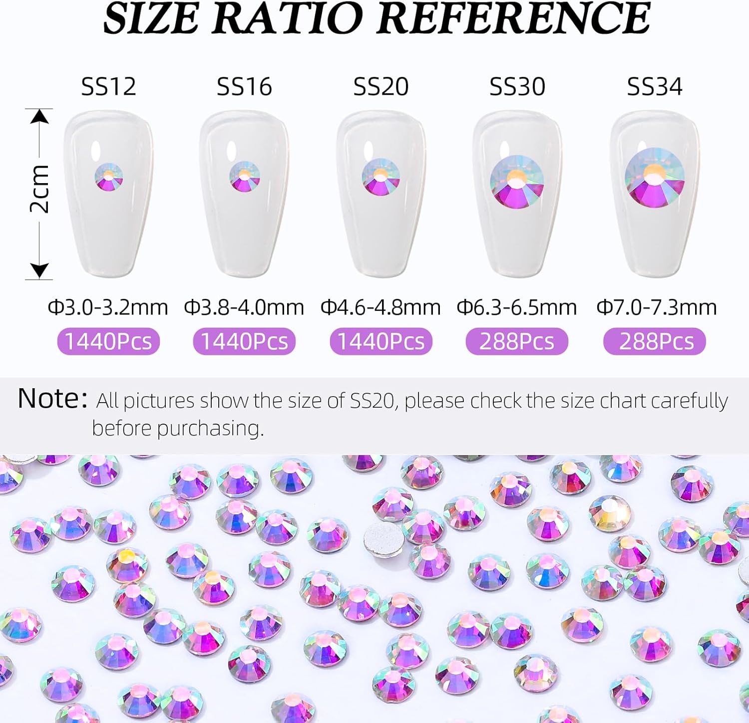 Crystal AB Flatback Rhinestones, Glass Rhinestones for Nail Art and Craft, Glue Fix, Loose Crystal Gemstones(Crystal AB, SS30, 288pcs, 6.4-6.6mm)