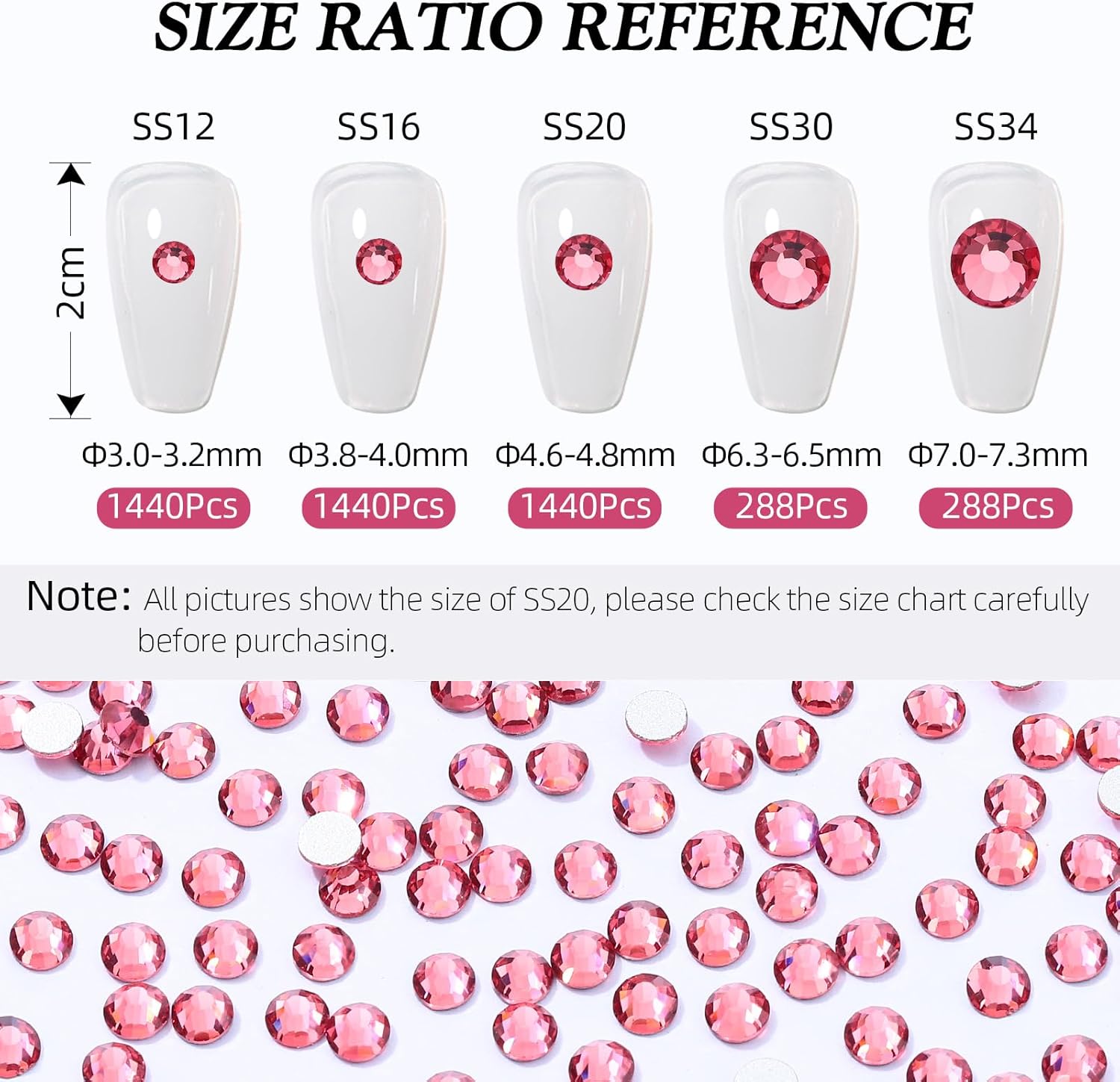 Rose Flatback Rhinestones, Glass Rhinestones for Nail Art and Craft, Glue Fix, Loose Crystal Gemstones(Rose, SS30, 288pcs, 6.4-6.6mm)