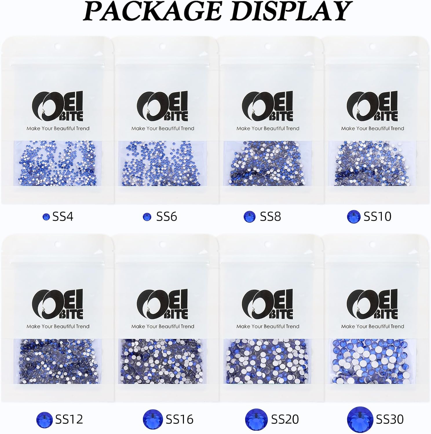 - Product Packaging: Bags packaging SS12 2.9~3.0 MM - 1440 Pcs blue flatback rhinestones