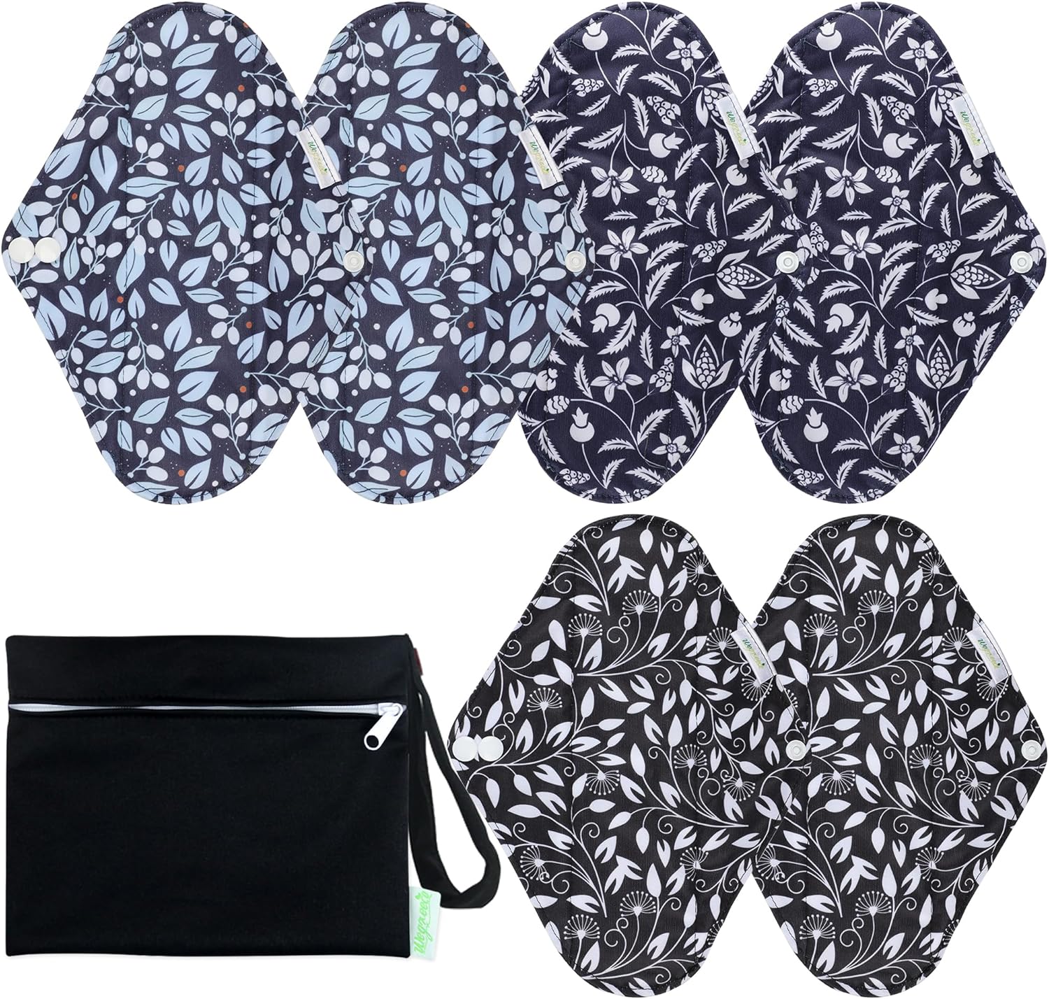 wegreeco Reusable Menstrual Pads - Reusable Sanitary Pads | Reusable Panty Liners | Soft Cloth Menstrual Pads - 6 Pack with 1 Cloth Mini Wet Bag (Medium, Leaves 02)