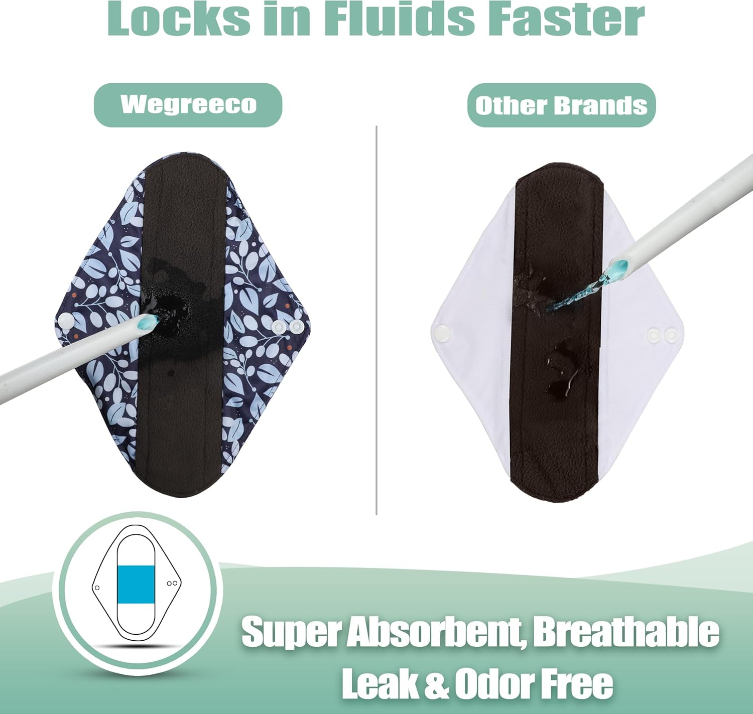 wegreeco Reusable Menstrual Pads - Reusable Sanitary Pads | Reusable Panty Liners | Soft Cloth Menstrual Pads - 6 Pack with 1 Cloth Mini Wet Bag (Large, Leaves 02)