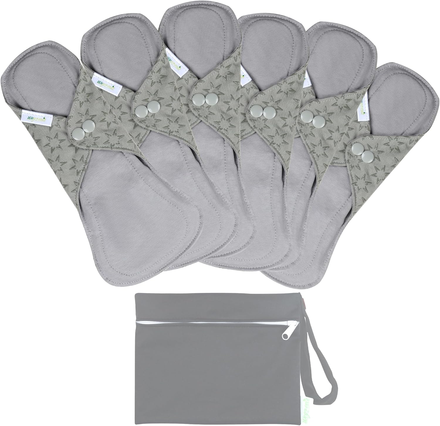 wegreeco 6 Pcs Reusable Menstrual Pads, Ultra Absorbent Cloth Pads for Heavy Flow, Sanitary for Teens, Women, Nonslip, Grey Inner, Grey Outer, X-Large