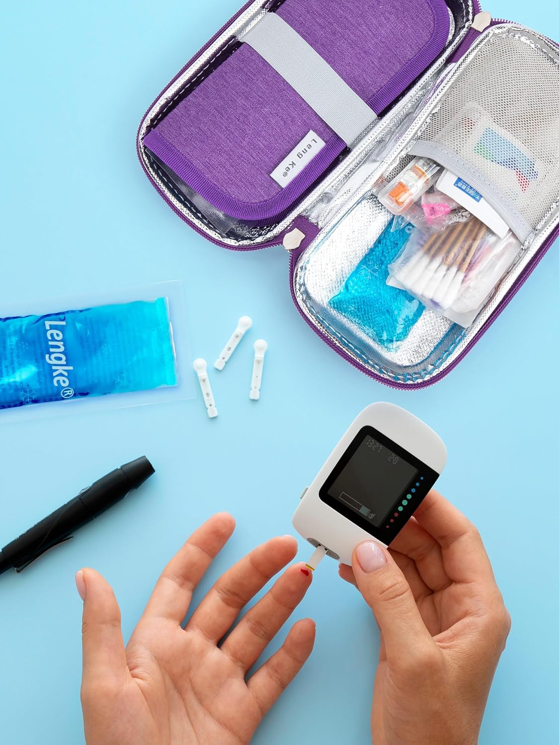 - ✈️ Easy Packing Tips for Effortless Travel—Before you head out, pack your insulin pens, syringes, needles, and alcohol wipes into your cooler case. Then simply place the small ice packs into the designated compartment—so you can travel easily and keep everything securely chilled.