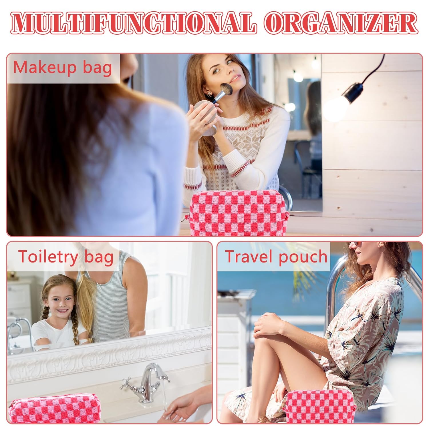 - LARGE CAPACITY AND PREMIUM MATERIAL: The cute makeup bag measure 7×4 inches and 7.7×2.5 inches, easy to carry. The checkered makeup bag is made of soft knitted fabric, easy to clean. The smaller ones can be used as pencil case or pencil pouch. This makeup travel bag can also hold small items such as makeup, skincare products, lipstick, eye shadow, eyebrow brush, etc. Makeup storage bag for women toiletries