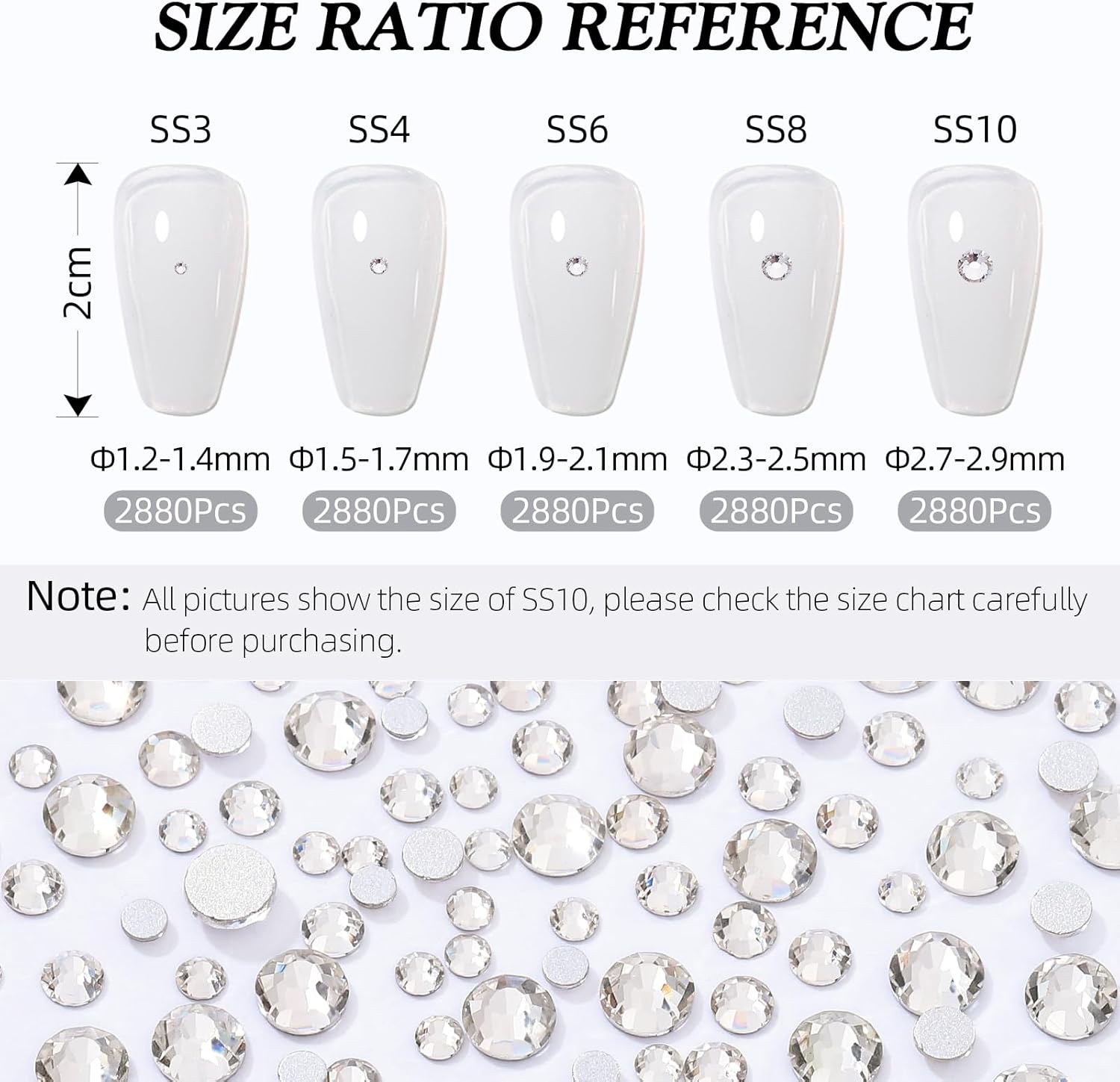 Crystal Clear Flatback Rhinestones, Glass Rhinestones for Nail Art and Craft, Glue Fix, Loose Crystal Gemstones(Crystal, SS6, 2880pcs, 1.9-2.0mm)