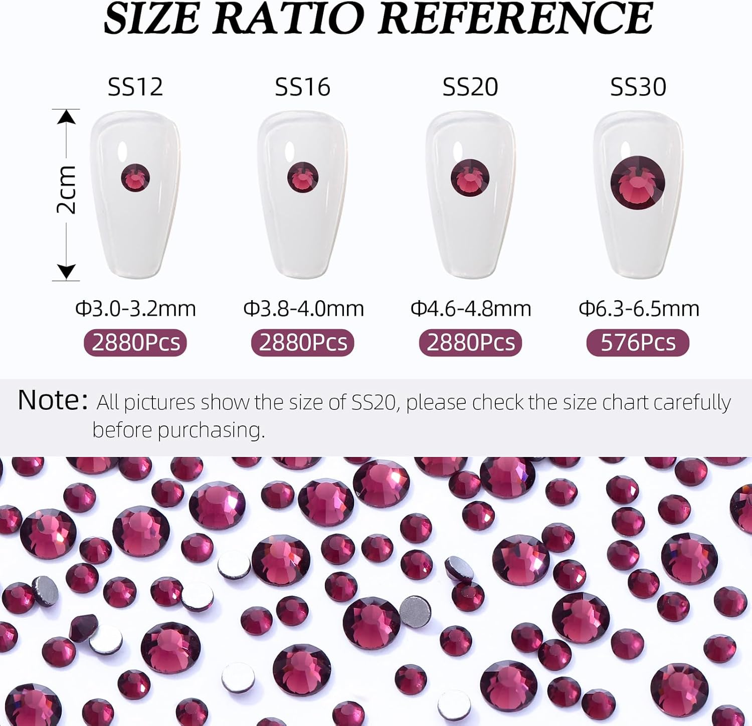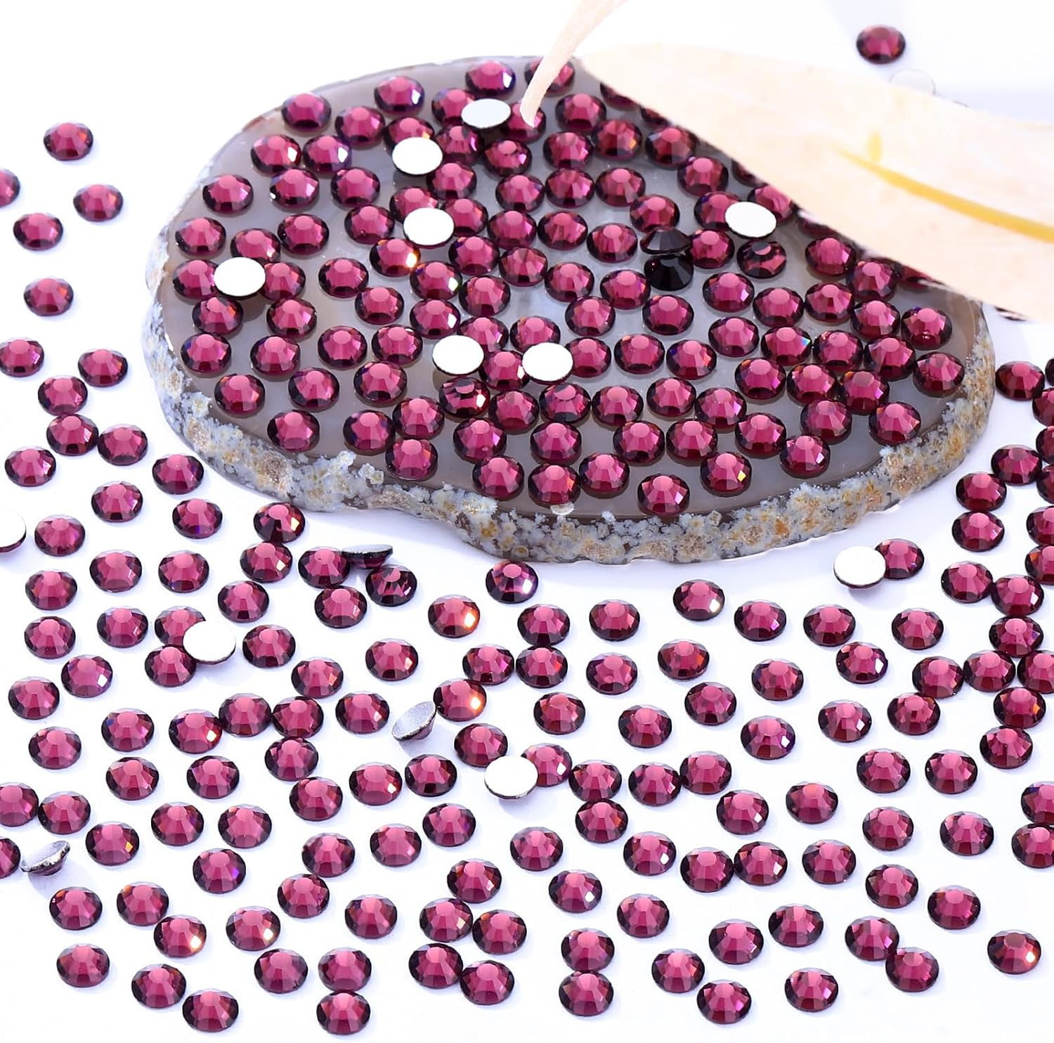 Purple Flatback Rhinestones, Glass Rhinestones for Nail Art and Craft, Glue Fix, Loose Crystal Gemstones(Purple, SS30, 576pcs, 6.4-6.6mm)