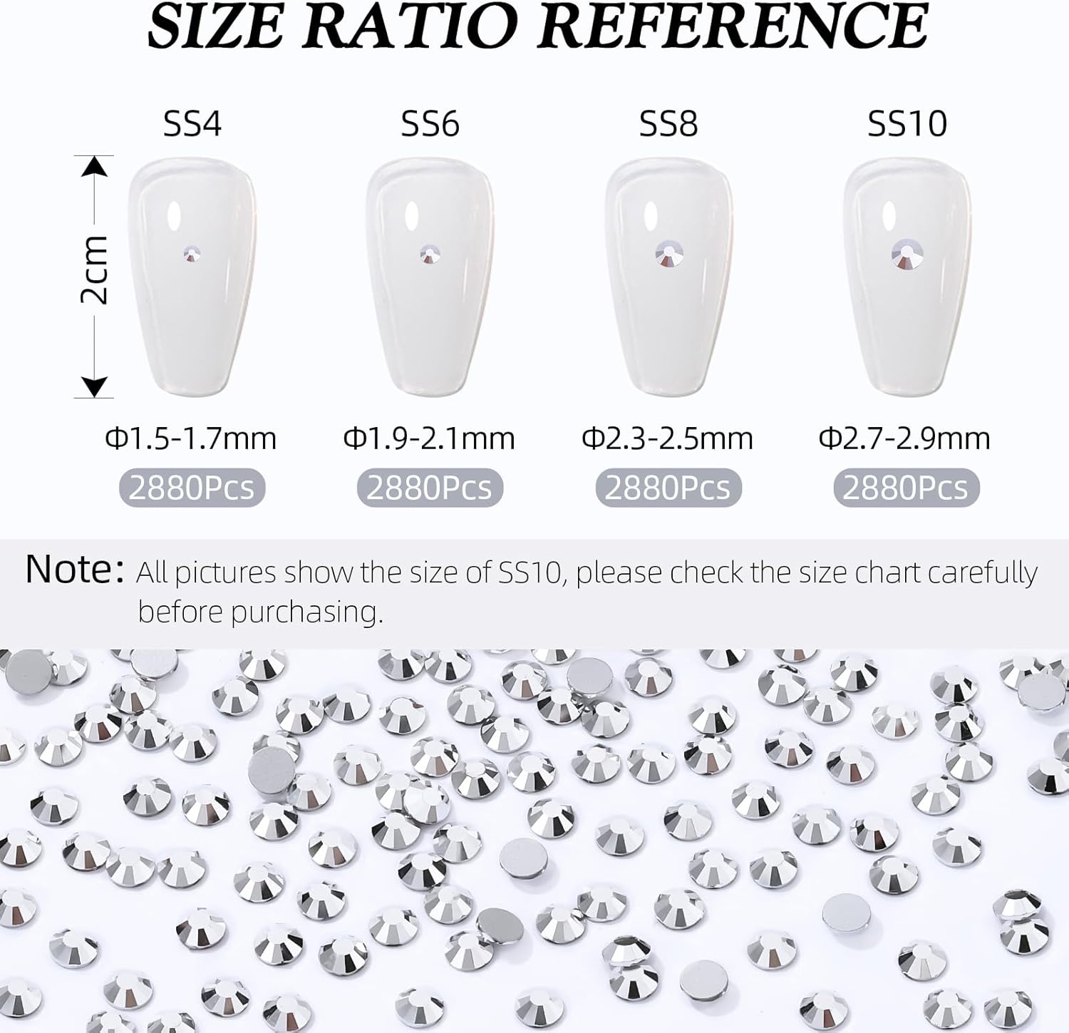 Silver Flatback Rhinestones, Glass Rhinestones for Nail Art and Craft, Glue Fix, Loose Crystal Gemstones(Silver, SS6, 2880pcs, 1.9-2.0mm)