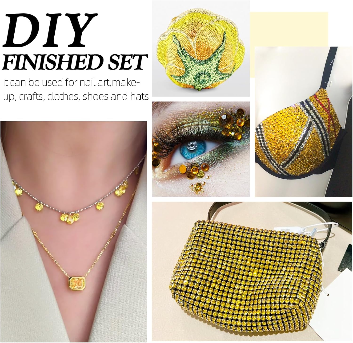 - Product Packaging: Bags packaging SS8 2.3~2.5 MM - 2880 Pcs yellow flatback rhinestones.