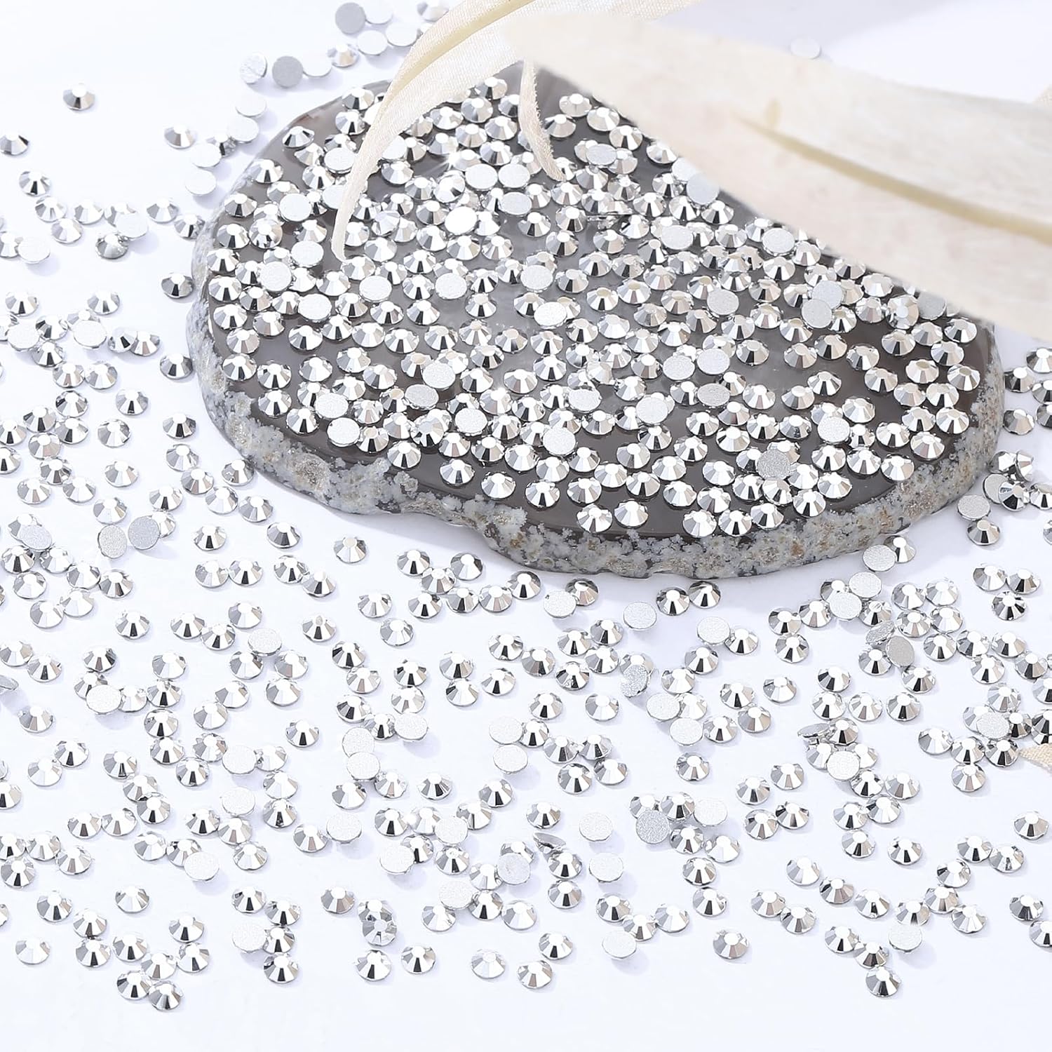 Silver Flatback Rhinestones, Glass Rhinestones for Nail Art and Craft, Glue Fix, Loose Crystal Gemstones(Silver, SS8, 2880pcs, 2.3-2.5mm)