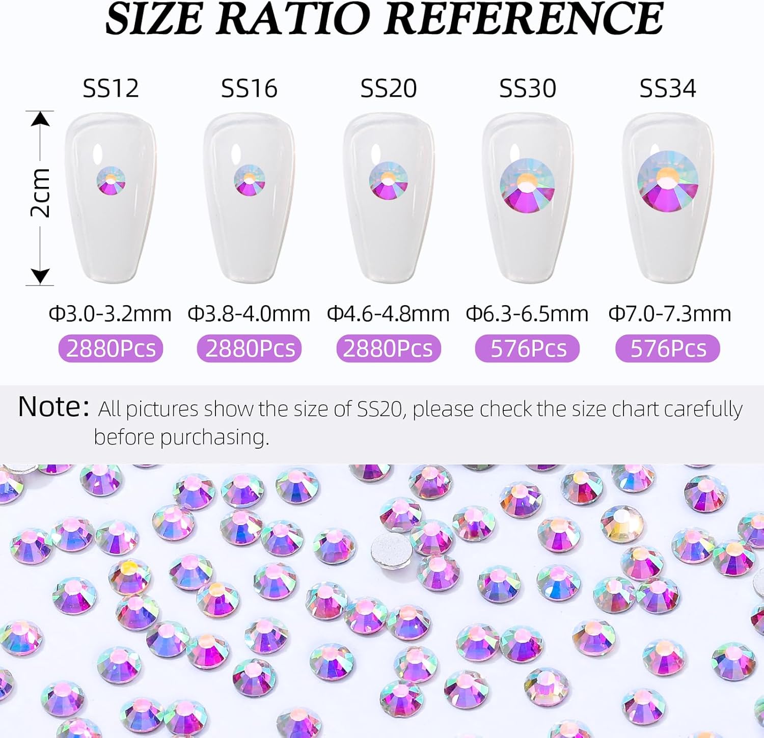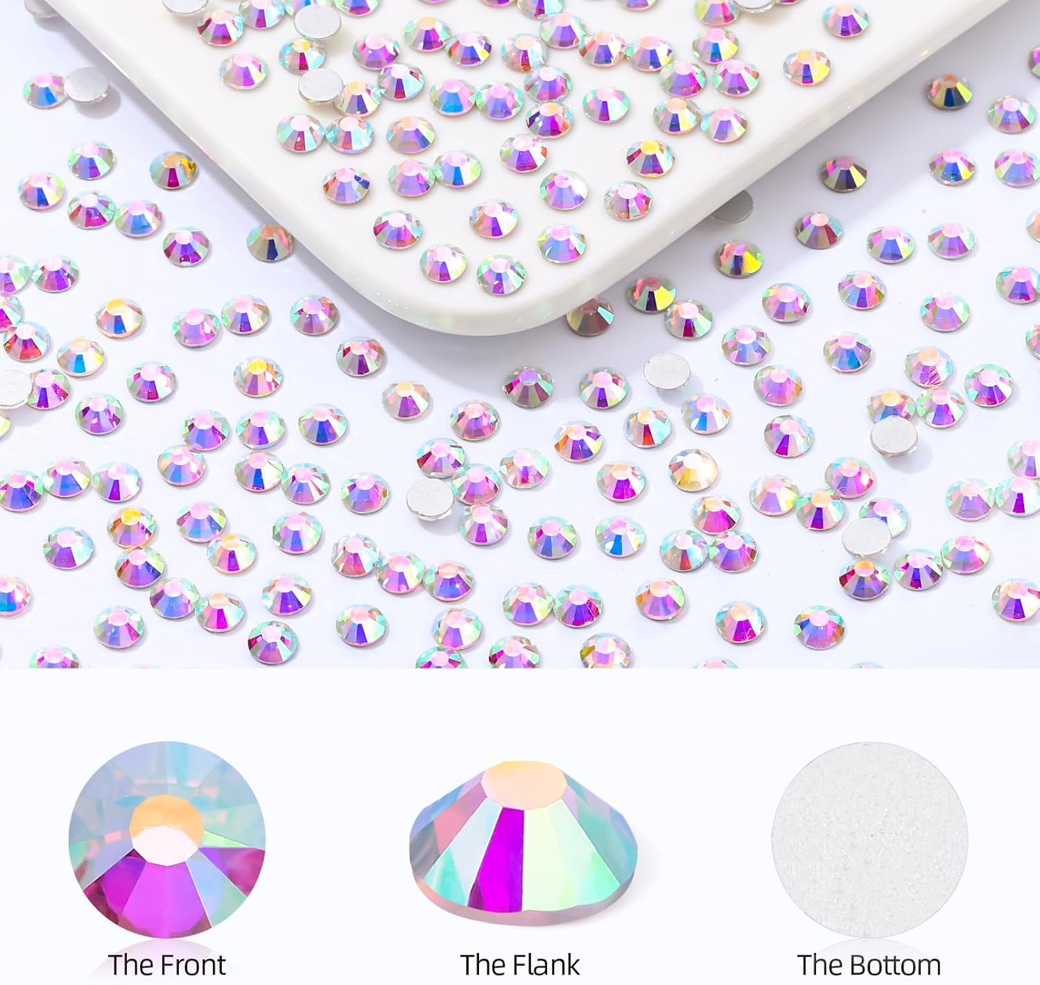 Crystal AB Flatback Rhinestones, Glass Rhinestones for Nail Art and Craft, Glue Fix, Loose Crystal Gemstones(Crystal AB, SS16, 2880pcs, 3.8-4.0mm)
