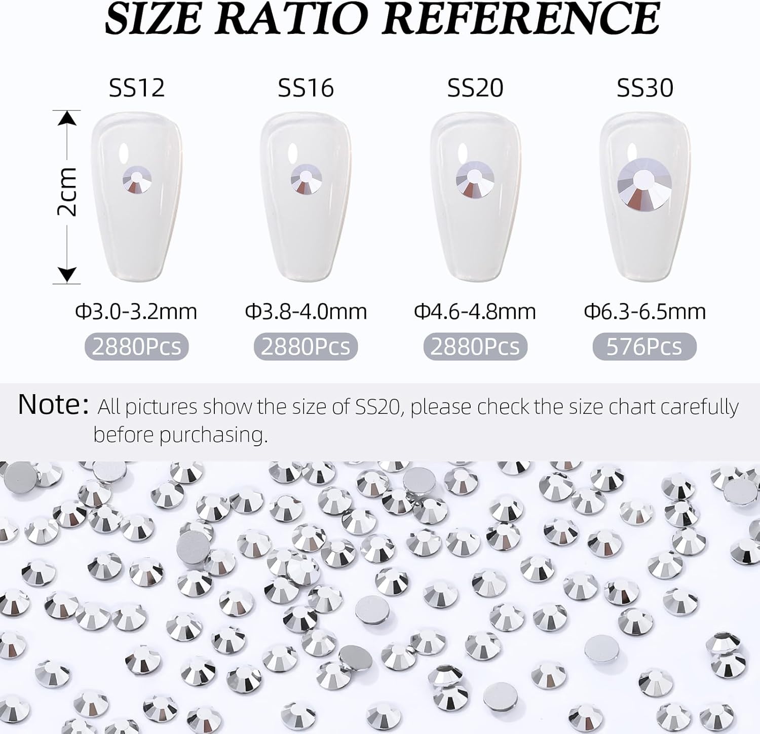 Silver Flatback Rhinestones, Glass Rhinestones for Nail Art and Craft, Glue Fix, Loose Crystal Gemstones(Silver, SS30, 576pcs, 6.4-6.6mm)