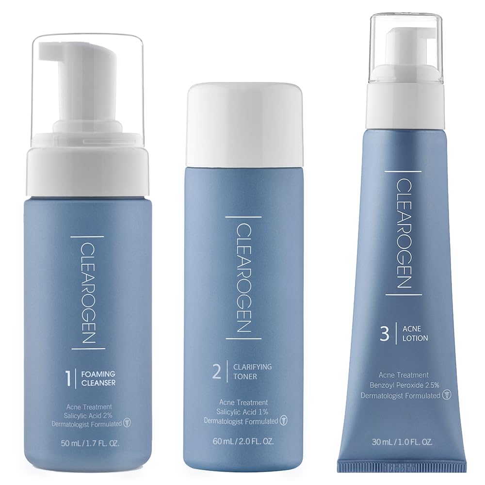 - 3 STEP SYSTEM: Clearogen's 3-step Acne Treatment Kit containing Benzoyl Peroxide is designed to effectively target and prevents the root cause of acne.