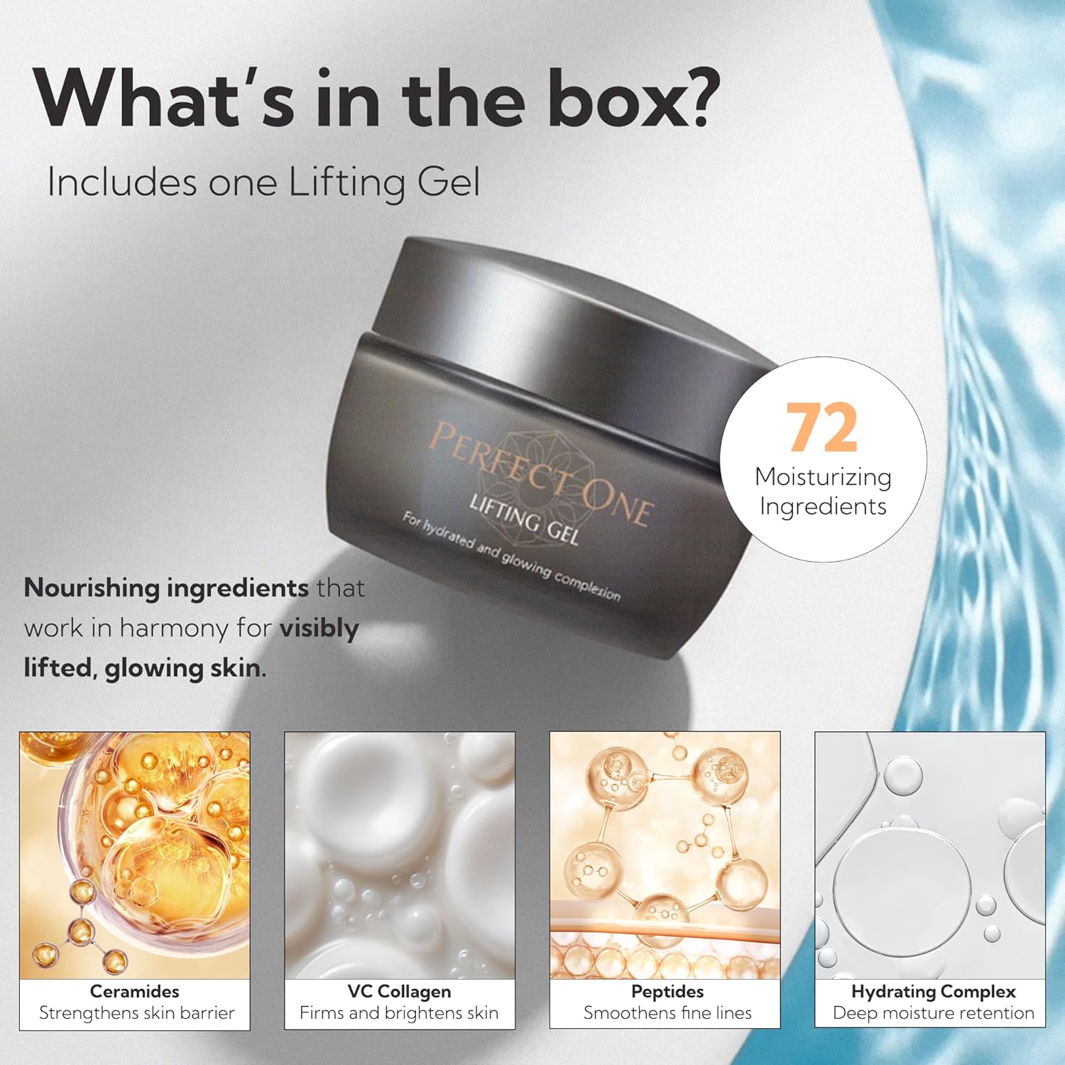 PERFECT ONE Lifting Gel - Helps The Skin Appear Firmer and Moisturized - All-in-One Skin Care Serum, Moisturizer, & Facial Mask - With VC Collagen, Niacinamide, Retinol, and Hyaluronic Acid, 50g