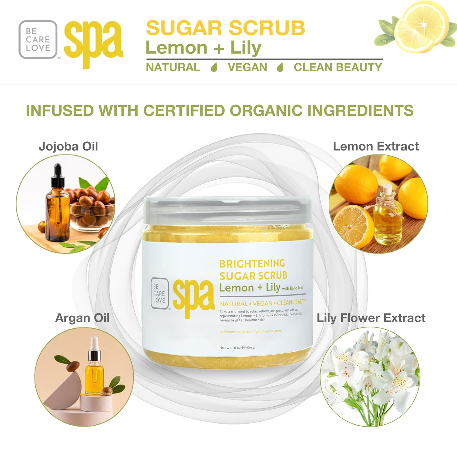 BCL SPA Sugar Scrub for Deep Hydration & Exfoliation with Certified Organic Ingredients for Professional and Home Use (16 oz, Lemon and Lily)