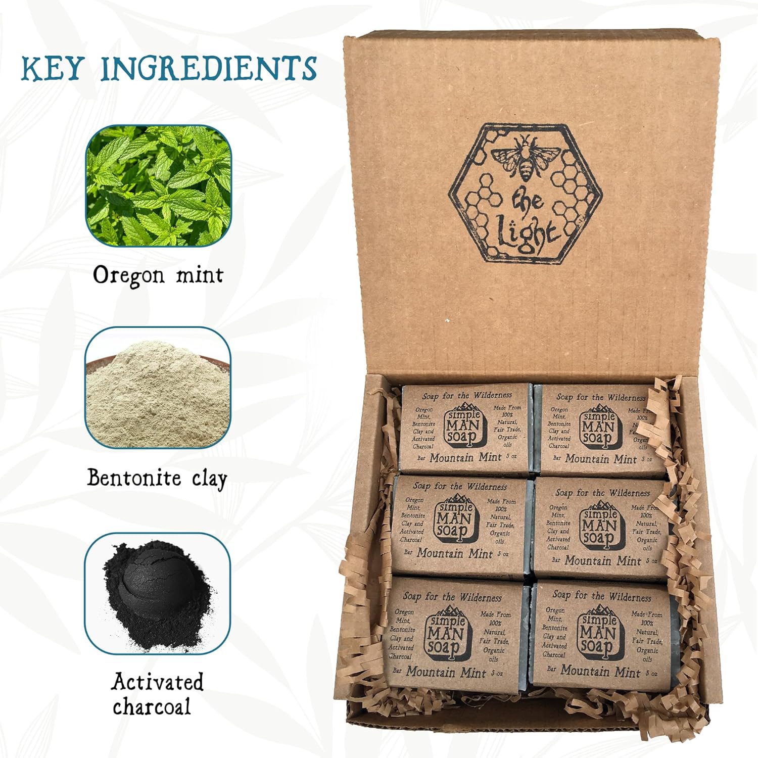 - Skin-loving organic ingredients: Our cold process artisan men's soaps are made in small batches by using organic, fair trade ingredients and pure essential oils. We craft our soap bars by hand using healing and nourishing ingredients like Bentonite Clay, Activated Charcoal, Organic Coconut oil and Turmeric root.