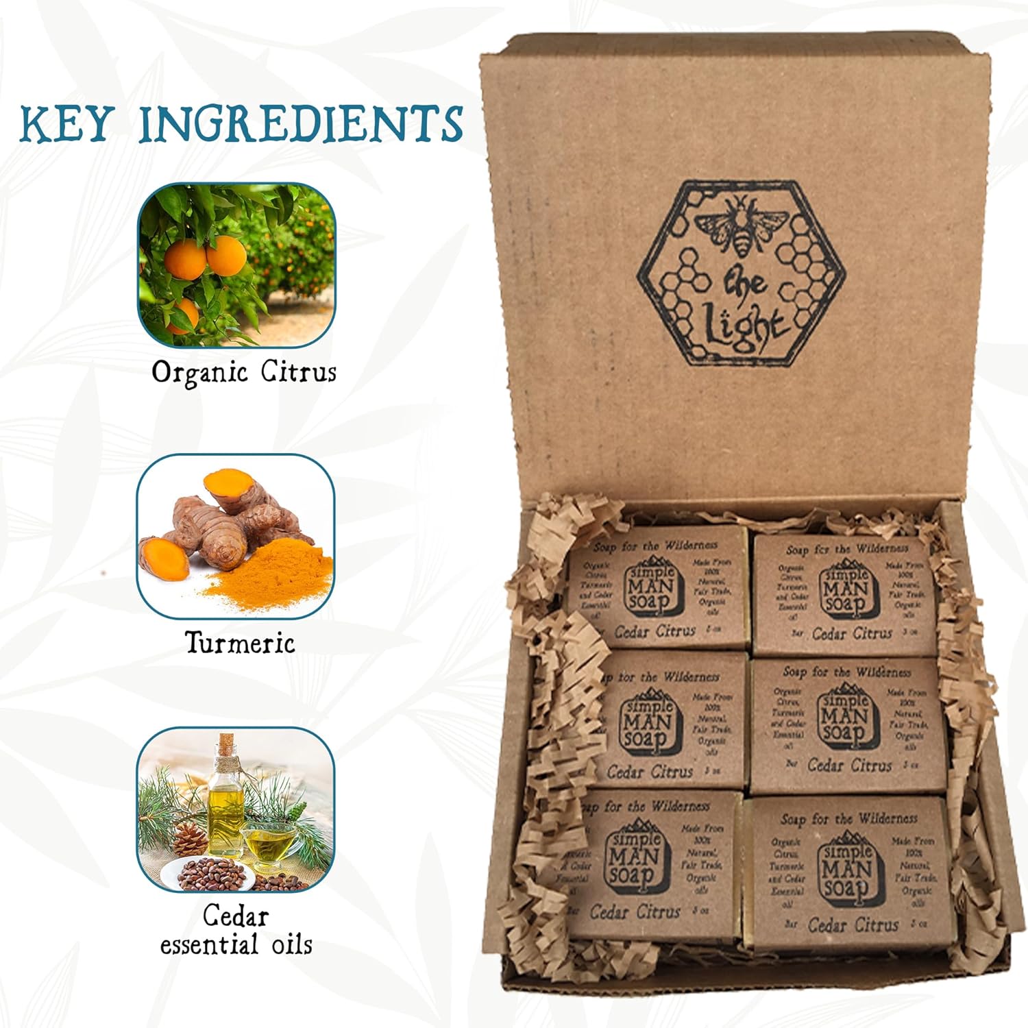 SimpleMan Soap Bar (Cedar Citrus) - Men’s soap with Organic & Fair Trade Essential Oils - All Natural, Handmade Man Bath Soap Bars-Pack of 12-2.5 Ounce bars(30 Ounces Total)