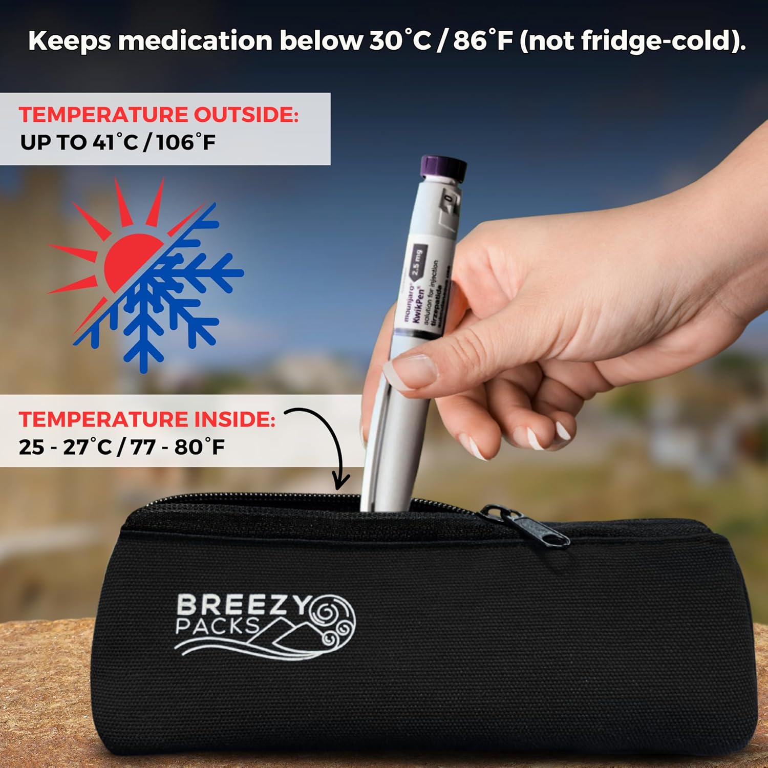Insulin Pens Cooler Travel Case 24/7 Protection | EpiPen Carry Medical Bag | TSA-Approved Diabetic Case Without Icepacks | Keep medicine at room temp. | Breezy Basic (Black)