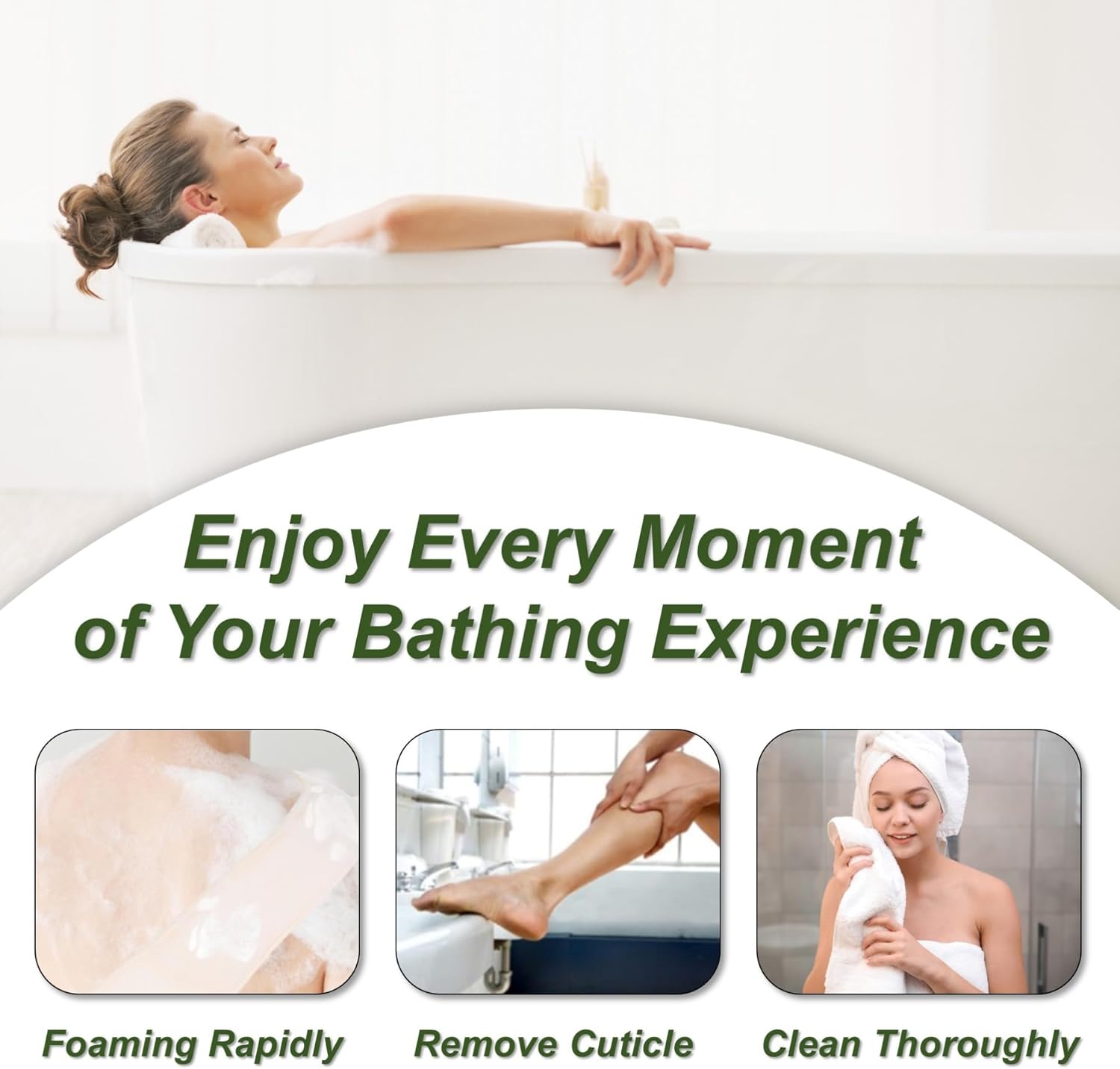 - [Easy to Use and Store] When you receive the loofah sponge and find it flat and hard, please soak it in warm water for a few minutes to allow it to expand and soften, then apply shower gel or soap and scrub the body with the loofah sponge to remove keratin and dirt. It has a top lanyard for convenient storage, and it is also recommended to clean it after each use and hang it in a well-ventilated area to dry.