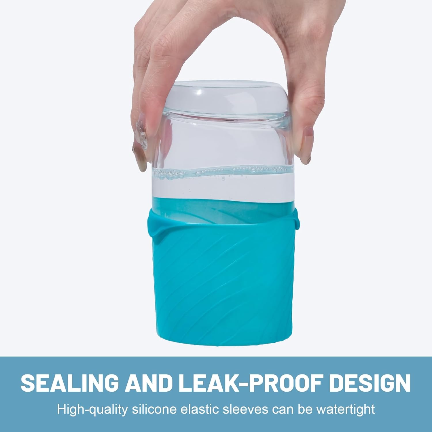 • EASY TO INSTALL: Put this leak-proof sleeve on bottles that are prone to leakage. It can be firmly fixed on the containers of toiletries and other beauty and personal care products. The silicone material can absorb the bottle to prevent leakage during travel and contamination of your Other items.