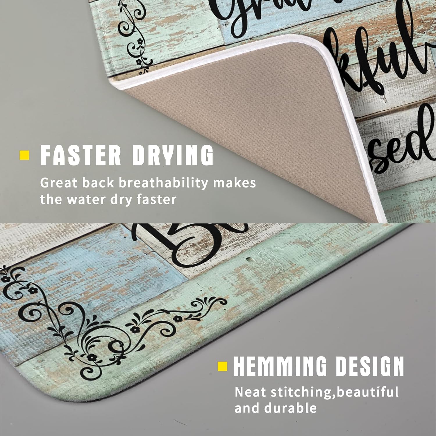 Rustic Wood Dish Drying Mat 16x18 Inch Grateful Thankful Blessed Kitchen Drainer Mats Absorbent Microfiber Rack Holder Countertop Pad