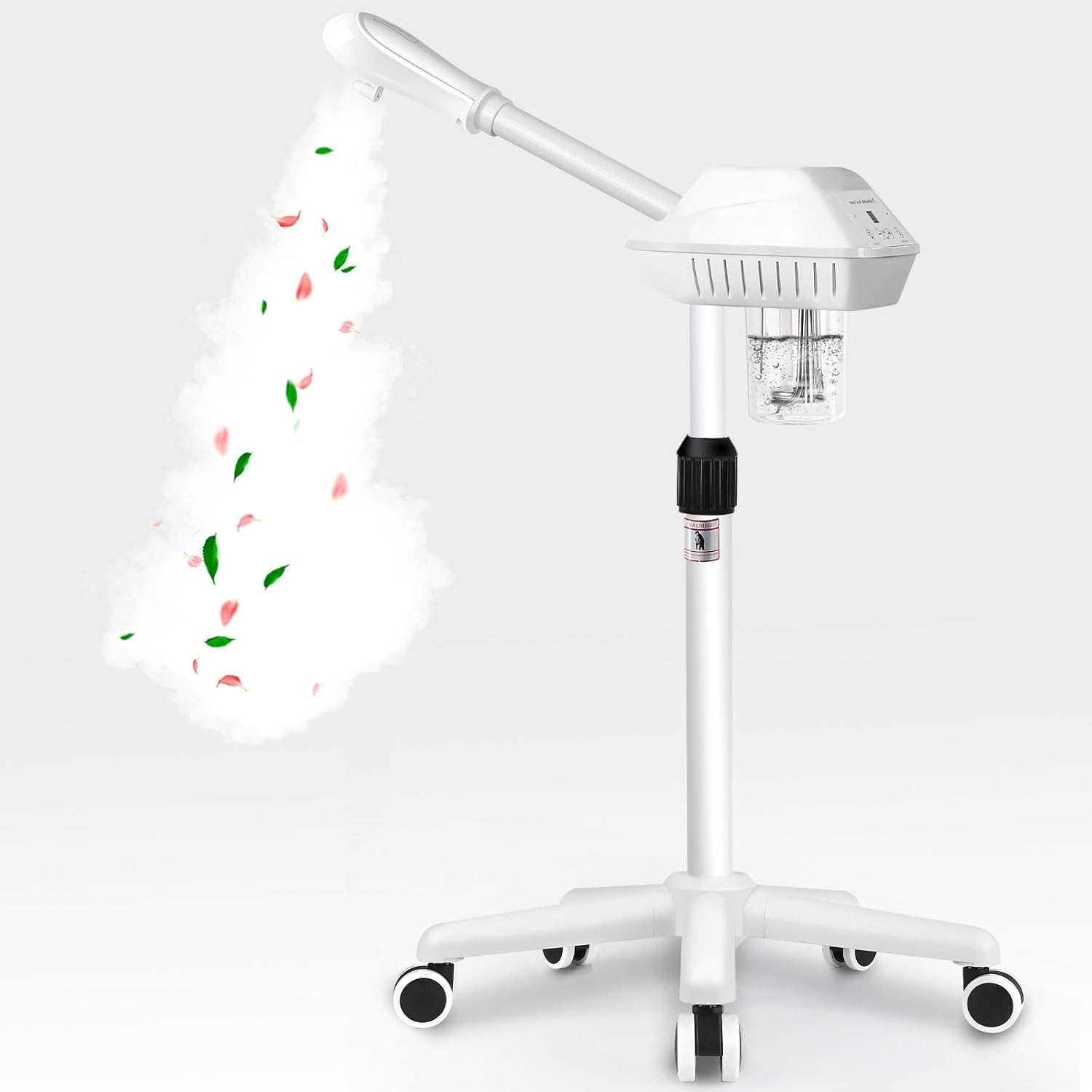 Professional Facial Steamer, Stand Ozone Face Steamer on Wheels, Adjustable Height and Angle,Estheticians Steamer More Steam,Hot Mist Facial Humidifier Atomizer for Spa Beauty, Home Use