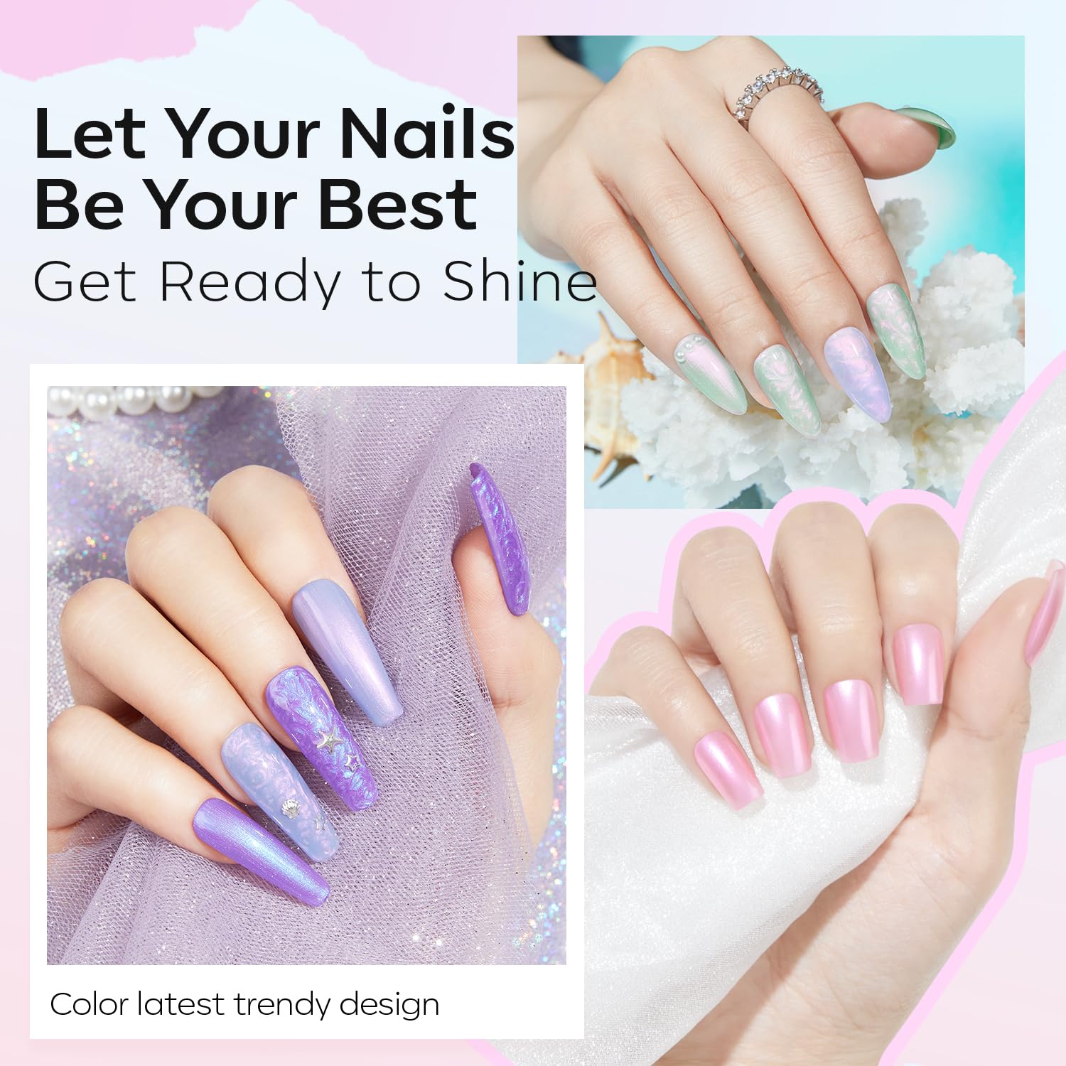 - User-Friendly for All Levels: Whether you're a beginner or a pro, these pearl nail polishes are easy to apply and offer endless creative possibilities. Beginners can achieve beautiful results with a single color, while advanced users can create intricate designs with different color combinations. With six colors in one set, you'll have a vast palette at your fingertips.