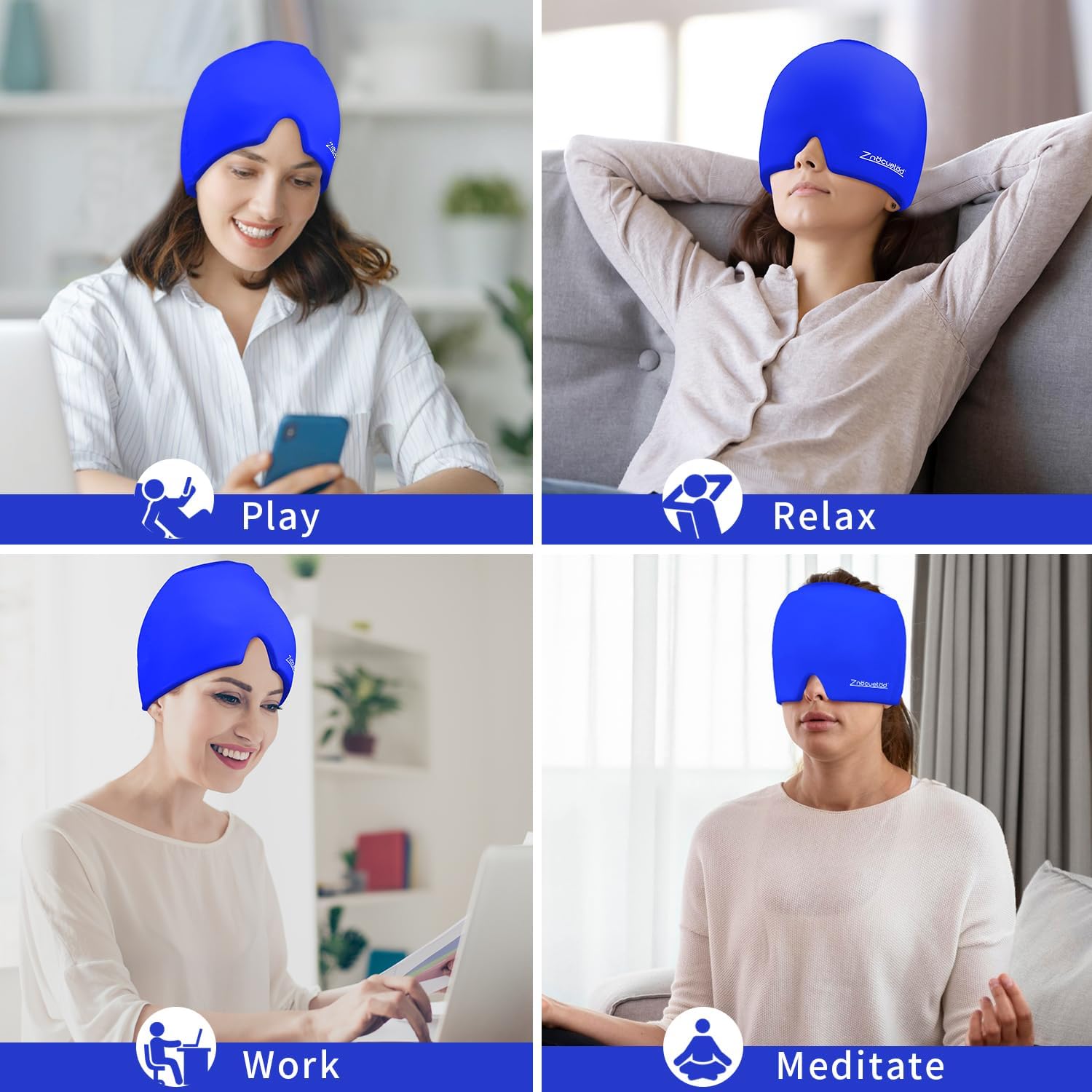 - 【Odor-Free Upgraded Materials】Unlike other outdated migraine relief hats, our headache relief hat is crafted with state-of-the-art materials and expert-grade gel, delivering a cooling sensation even without freezing. Non-toxic and odorless, the thick solid gel maintains its cooling effect for extended periods and remains soft and smooth when frozen, guaranteeing an exceptionally comfortable wearing experience.For prolonged and continuous relief, it's recommended to acquire two or more cold cap for migraines, ensuring you always have one head ice pack migraine available for immediate use while another migraine hat remains prepped and ready to go.
