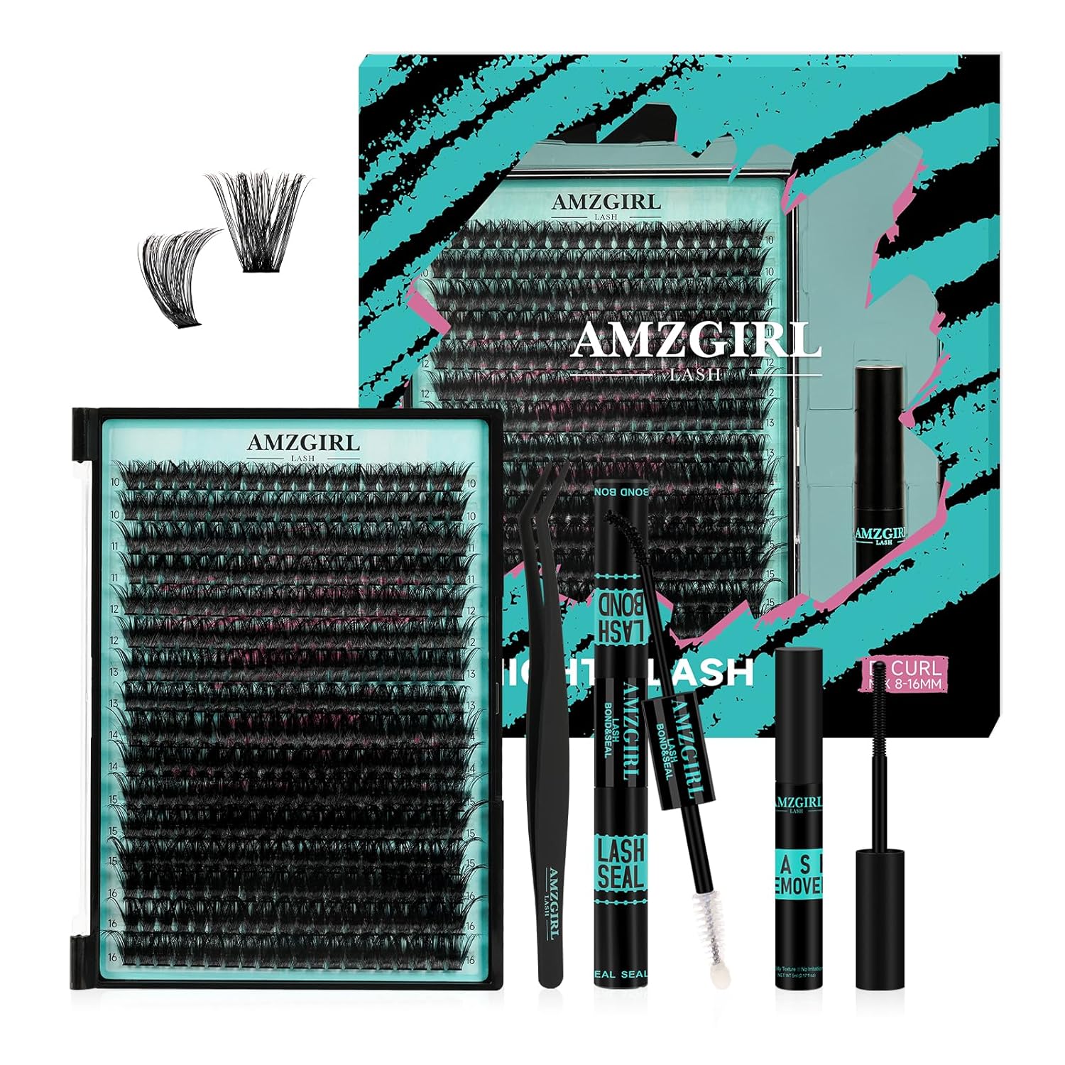 Lash Clusters Kit 320Pcs, 80D DIY Individual Eyelashes Extension With Bond, Seal, Remover, Applicator Tool for False Cluster At Home (D-Mix10-16mm)