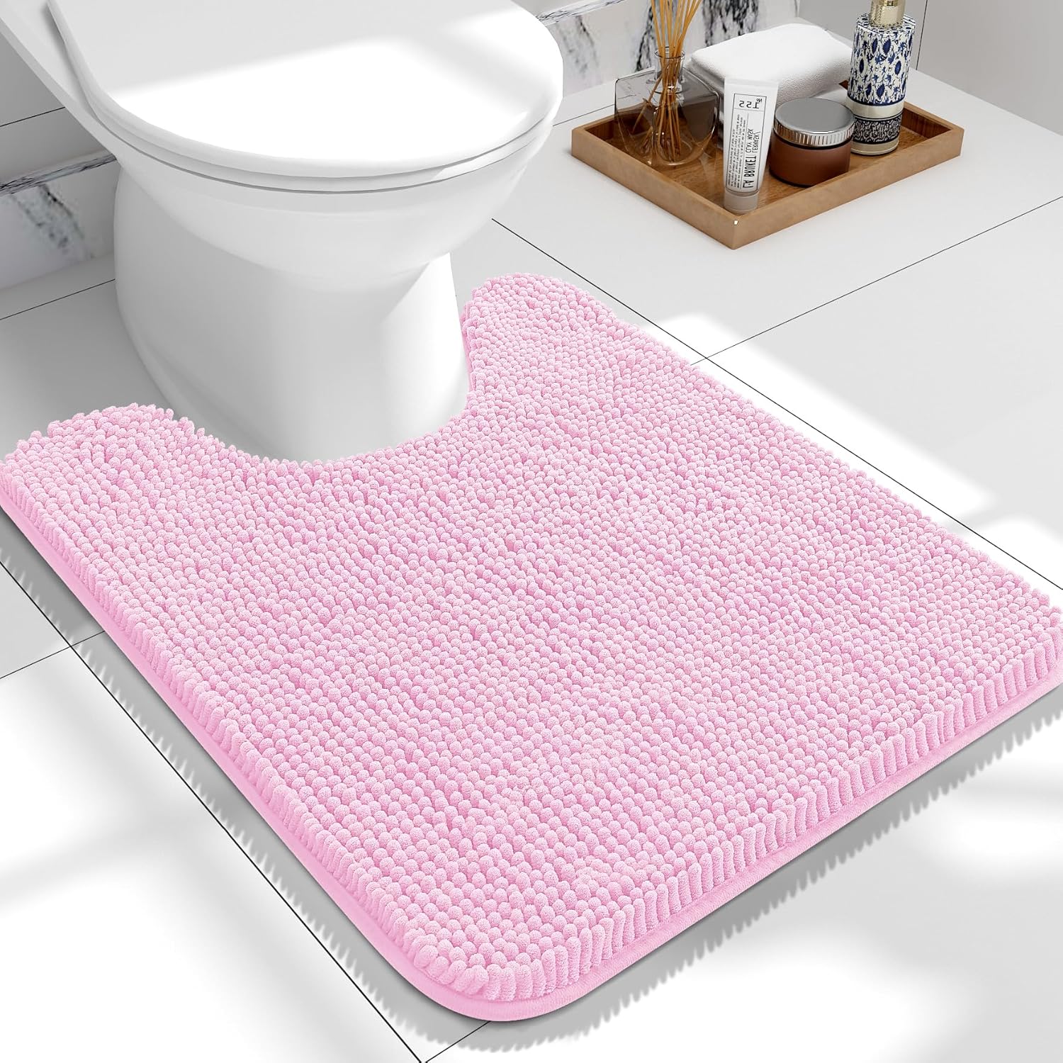 OLANLY Toilet Rugs U-Shaped 24x20, Extra Soft Absorbent Chenille Contour Bathroom Rugs for Toilet, Dry Quickly, Machine Washable, Non-Slip Bath Mat, Pink