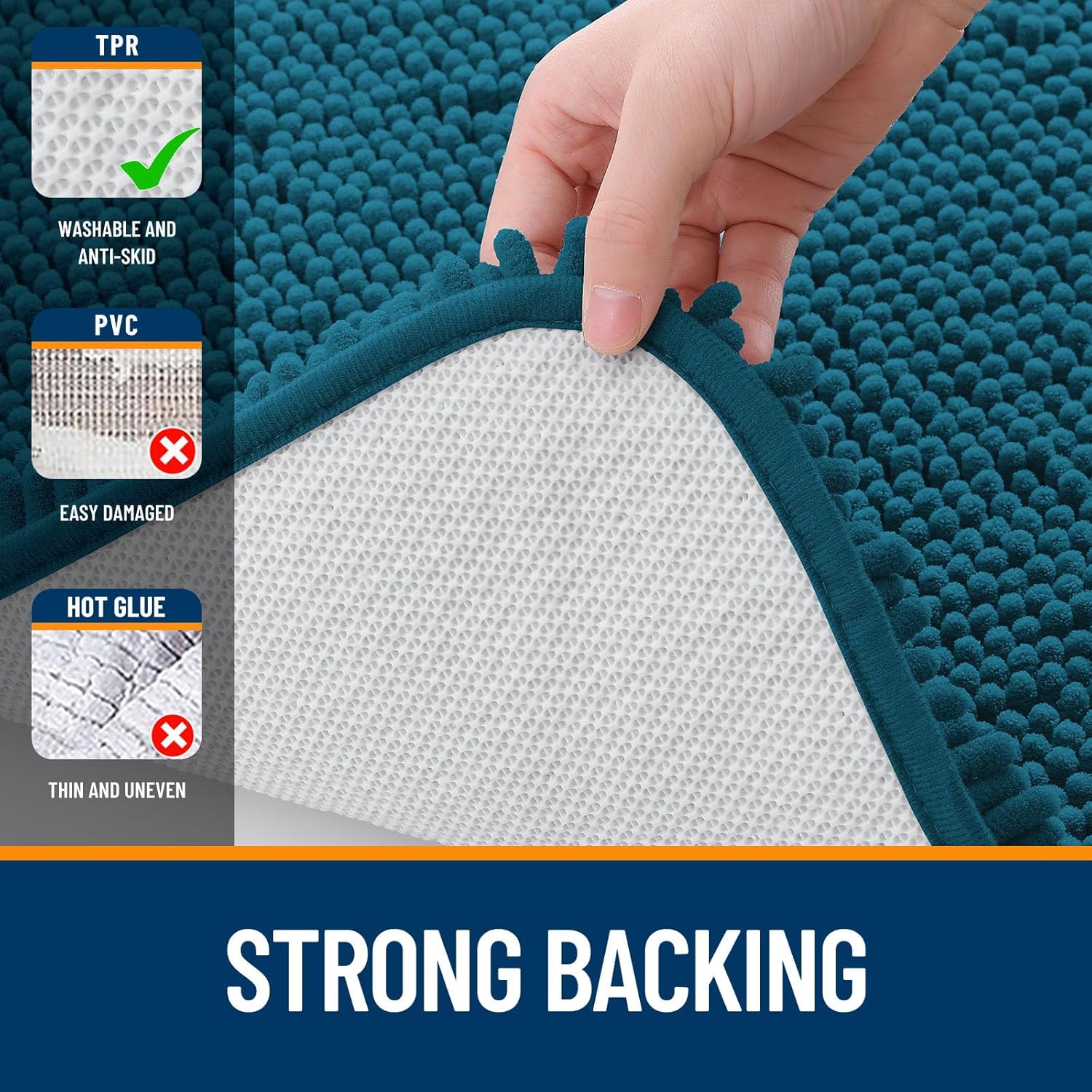 OLANLY Bathroom Rugs 36x24, Extra Soft Absorbent Chenille Bath Rugs, Rubber Backing Quick Dry, Machine Washable Bath Mats for Bathroom Floor, Tub and Shower, Home Decor Accessories, Peacock Blue