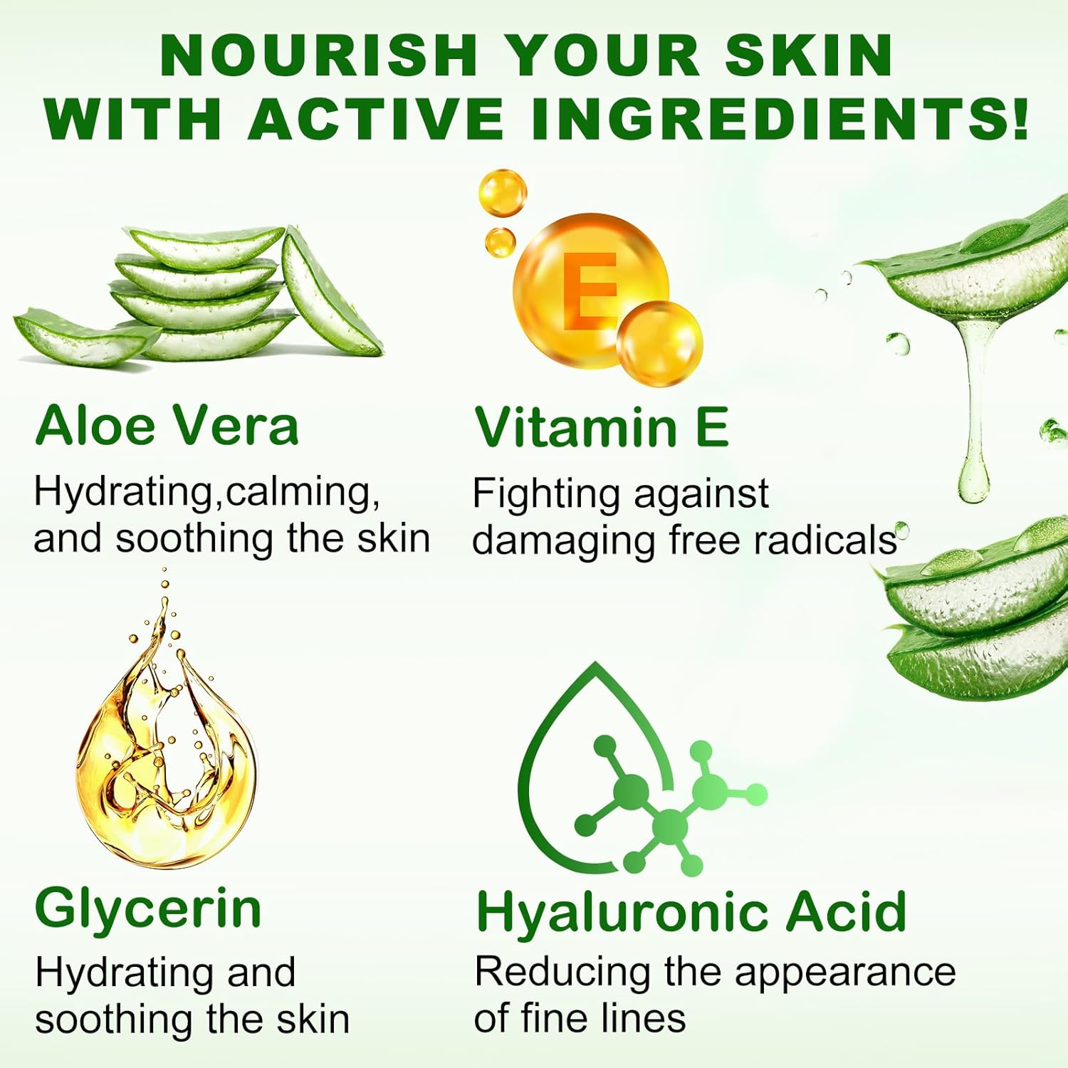 - Active Ingredients : Hyaluronic Acid,Aloe Vera,Vitamin E, hyaluronic_acid, vitamin_e