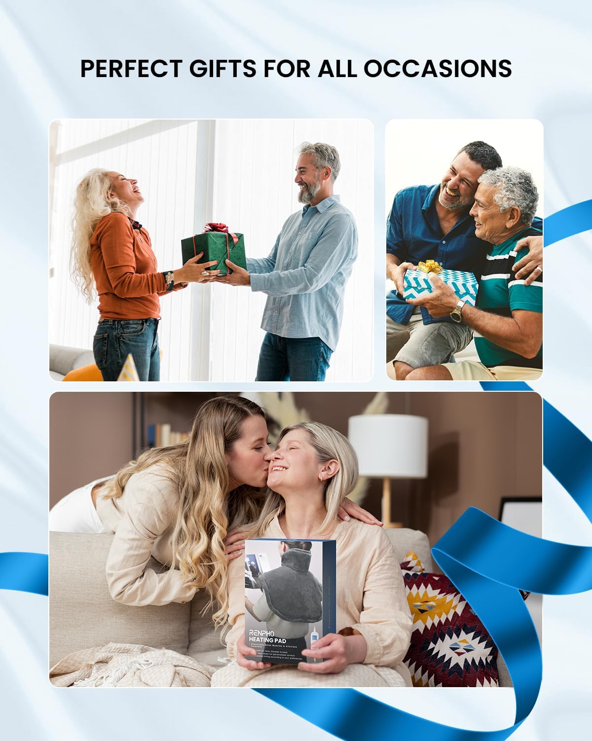 RENPHO Heating Pad for Neck and Shoulders and Back, Birthday Christmas Gifts for Women Men, FSA Eligible Items Only List, Edge Weighted Electric Heat Pad for Pain Relief, ETL Certified, 21"x23" Gray