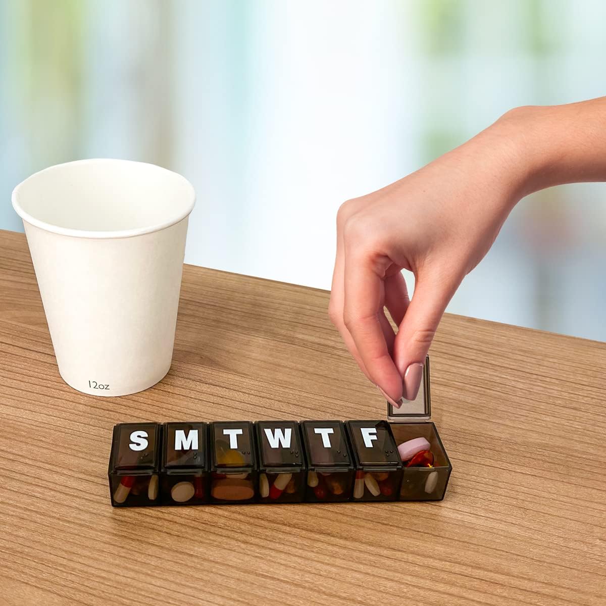 Amazon Basic Care Weekly (7-Day) Pill Organizer, Vitamin Planner, and Medicine Box, Medium Compartments, Black (Pack of 2)