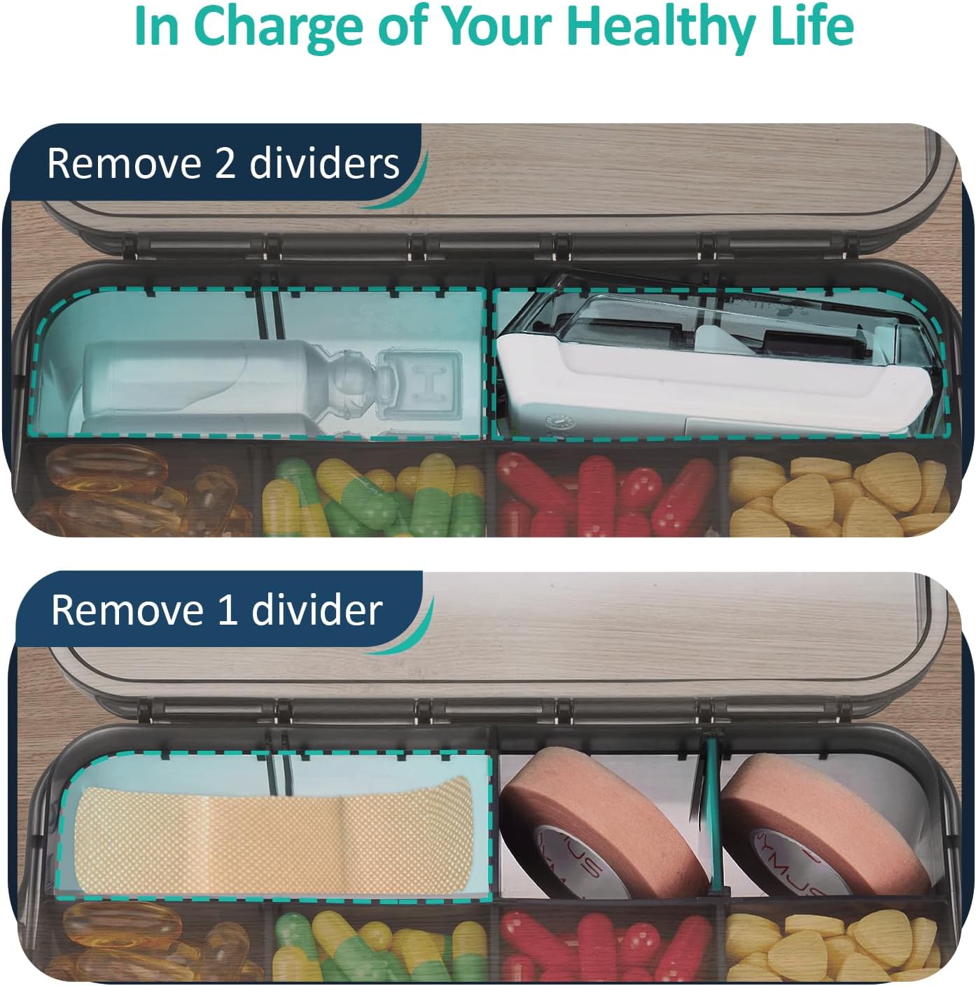 - 【Customizable Spaces】Fit your supplement and first aid kit in this vitamin holder organizer to suit your needs with removable dividers. Stay organized and tidy without limitation