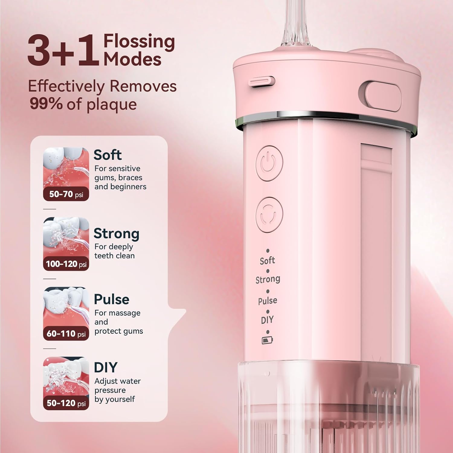 Portable Mini Water Dental Flosser for Teeth Cleaning Pick,Travel Oral Irrigator with Telescopic Water Tank,4 Modes and Waterproof Design-Perfect for Braces,Bridges,Home&Travel Dental Care