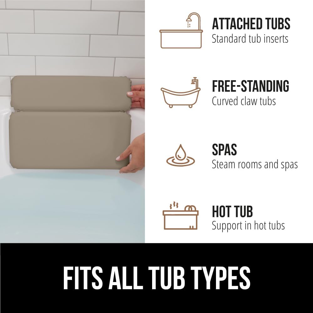 GORILLA GRIP Bath Pillow for Tub, Improved Suction Cups, Luxury Bathtub Pillows, Headrest for Neck and Back Support, Relaxing Home Spa, Hot Tubs and Bathroom Essentials, Gifts for Women, 2 Panel Beige