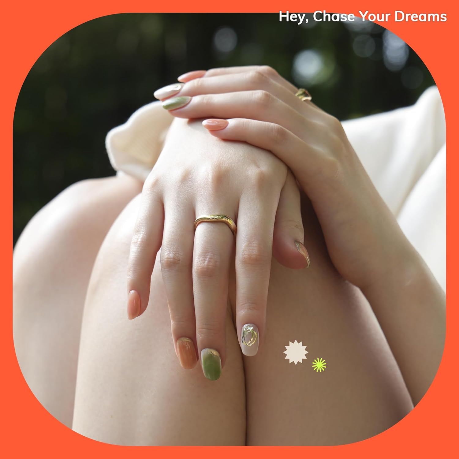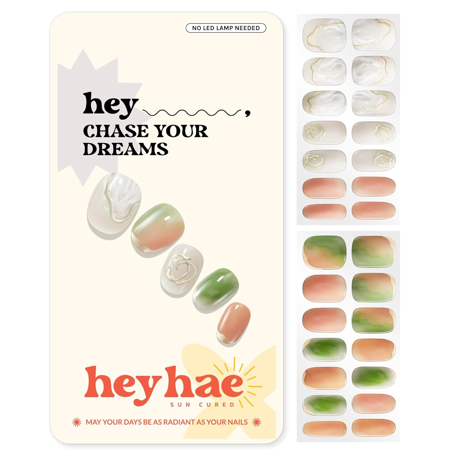 Semi Cured Gel Nail Strips | No LED Lamp Needed | Marble, Glitter, Spring | Easy Apply & Remove, Salon Quality |Includes 28 Strips, 1 Prep Pads, Nail File & Wooden stick- Hey, Chase Your Dreams
