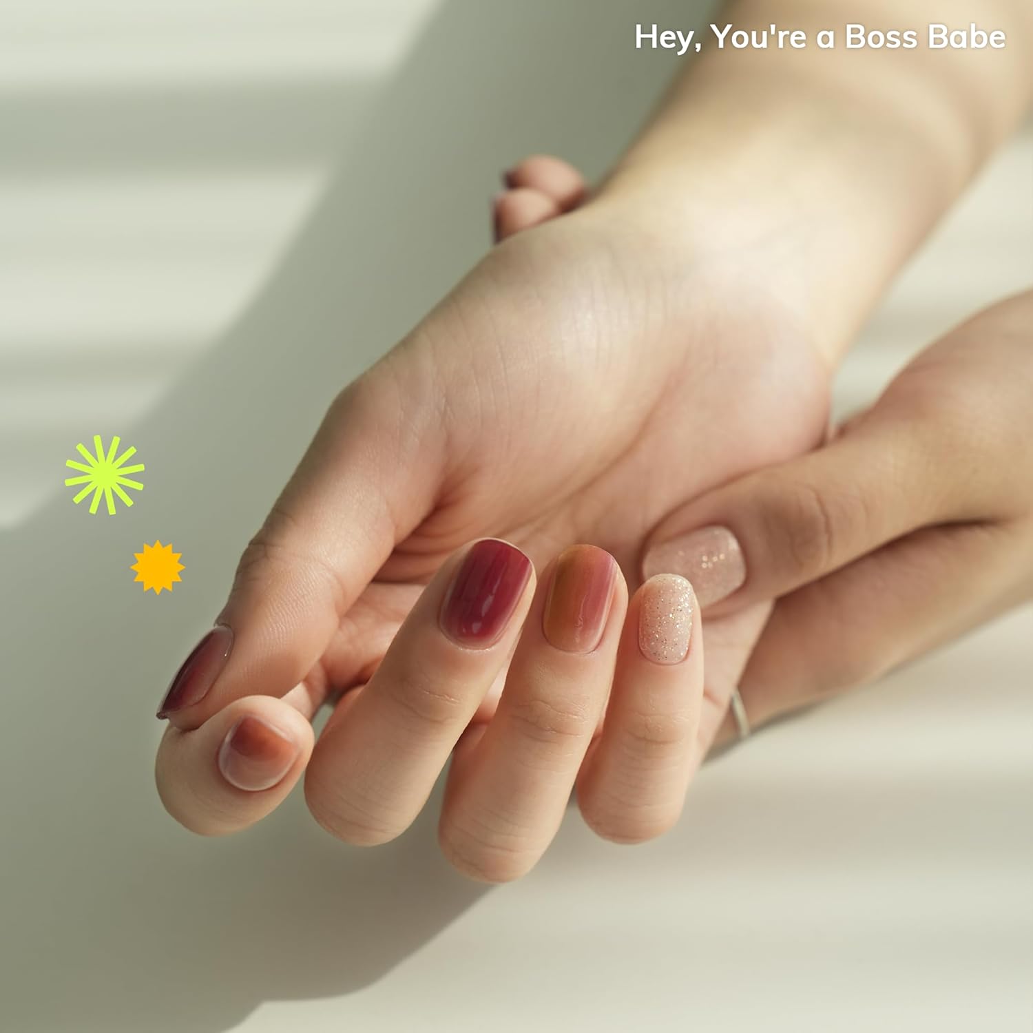 - Perfect Fall Nails! Turn heads with these show-stopping toned-down syrup red color with captivating ombre marble and transparent glitter accents making it a versatile and stylish choice for any occasion.